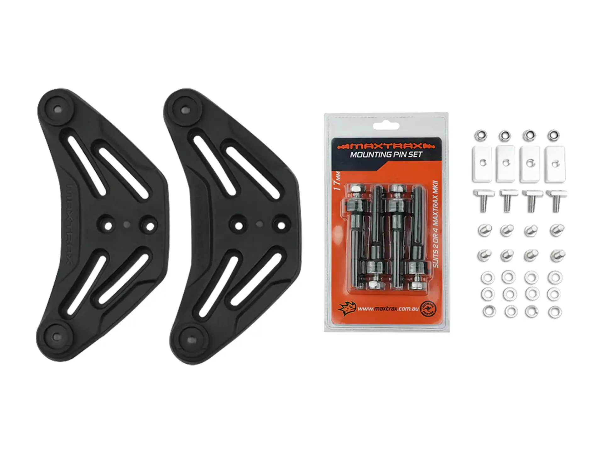 La paire avec les axes de verrouillage La paire de supports plats de galerie Maxtrax MKII est spécialement conçu pour fixer les plaques de désensablage Maxtrax MKII sur une plateforme de toit ou des barres transversales. Robuste et fiable, il permet de transporter jusqu'à 4 plaques Maxtrax MK2 en toute sécurité, tout en offrant un ajustement précis grâce à une plage de réglage de 180 mm.Ce kit est composé de supports plats en nylon renforcé et d'une visserie complète en acier inoxydable, assurant une résistance optimale pour un usage intensif en conditions tout-terrain. Le kit de montage universel Maxtrax Flat Rack offre une solution robuste et pratique pour sécuriser vos plaques Maxtrax MKII sur votre véhicule. Sa conception en matériaux de qualité et son ajustement précis en font un accessoire très pratique pour vos aventures tout-terrain.Caractéristiques :- Dimensions : 180 mm d'ajustement pour s'adapter aux différentes configurations de galeries et plateformes- Dimensions emballé (cm) : 22 (L) x 4 (H) x 34 (P) - Poids emballé : 2kg Compatibilité :- Adapté pour 4 plaques Maxtrax MKII- Non compatible avec les modèles Maxtrax XtremeContenu du kit :- 1 jeu d'axes de fixation Maxtrax 17 mm- 2 supports plats en nylon renforcé avec logo Maxtrax- 4 écrous de rail (Channel Nuts) : 40 mm x 20 mm x 10 mm - 4 boulons en T en acier inoxydable : 35 mm x 20 mm x 4,5 mm (M8 x 20 mm)- 4 boulons M8, rondelles plates, rondelles à ressort et écrous Nyloc en acier inoxydable