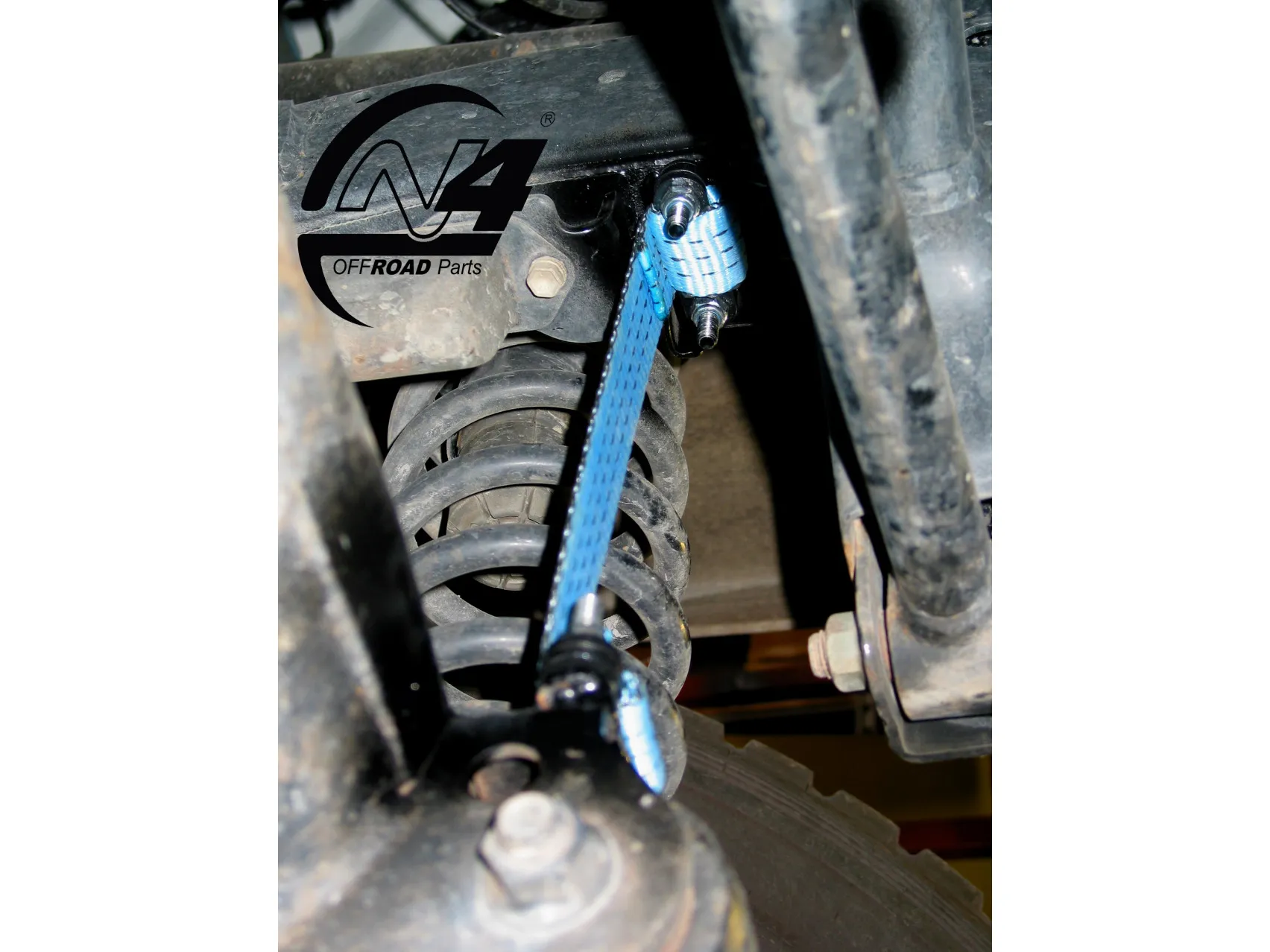 Système universel à souder Ce kit universel de sangle anti débattement à souder N4-Offroad est réglable grâce aux 1.50m de longueur fournis pour les 2 cotés, vous pourrez ajuster et limiter la course en détente de la suspension Notre pack de sangles anti débattement est l'un des plus simple à installer. Résistance de la sangle est 3500 kg Son système de réglage exclusif lui permet de s'adapter à tous les types de suspension à ressort à lames, barre de torsion et ressort hélicoïdaux Le montage peut être réalisé en sangle simple ou double brin. Important : Installation par un professionnel conseillé car il faut de souder sur le corps de pont ou le triangle de suspension et sur le chassis les supports de sangle anti-débattement en acier et refaire une protection anti-corrosion.