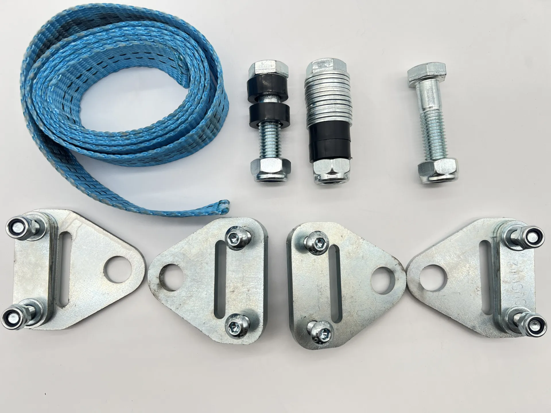 Système universel à visser Ce kit universel de sangle anti débattement à visser N4-Offroad est réglable grâce aux 1.50m de longueur fournis pour les 2 cotés, vous pourrez ajuster et limiter la course en détente de la suspension : Notre pack de sangles anti débattement est l'un des plus simple à installer grâce aux supports à visser Résistance de la sangle est 3500 kg Son système de réglage exclusif lui permet de s'adapter à tous les types de suspension à ressort à lames, barre de torsion et ressort hélicoïdaux Le montage peut être réalisé en sangle simple ou double brin. Important : Installation par un professionnel conseillé car il y a plusieurs méthode de fixation soit boulonner ou souder un axe ou percer selon l'endroit du montage soit sur le corps de pont ou le triangle de suspension et sur le chassis les supports de sangle anti-débattement en acier et refaire une protection anti-corrosion.