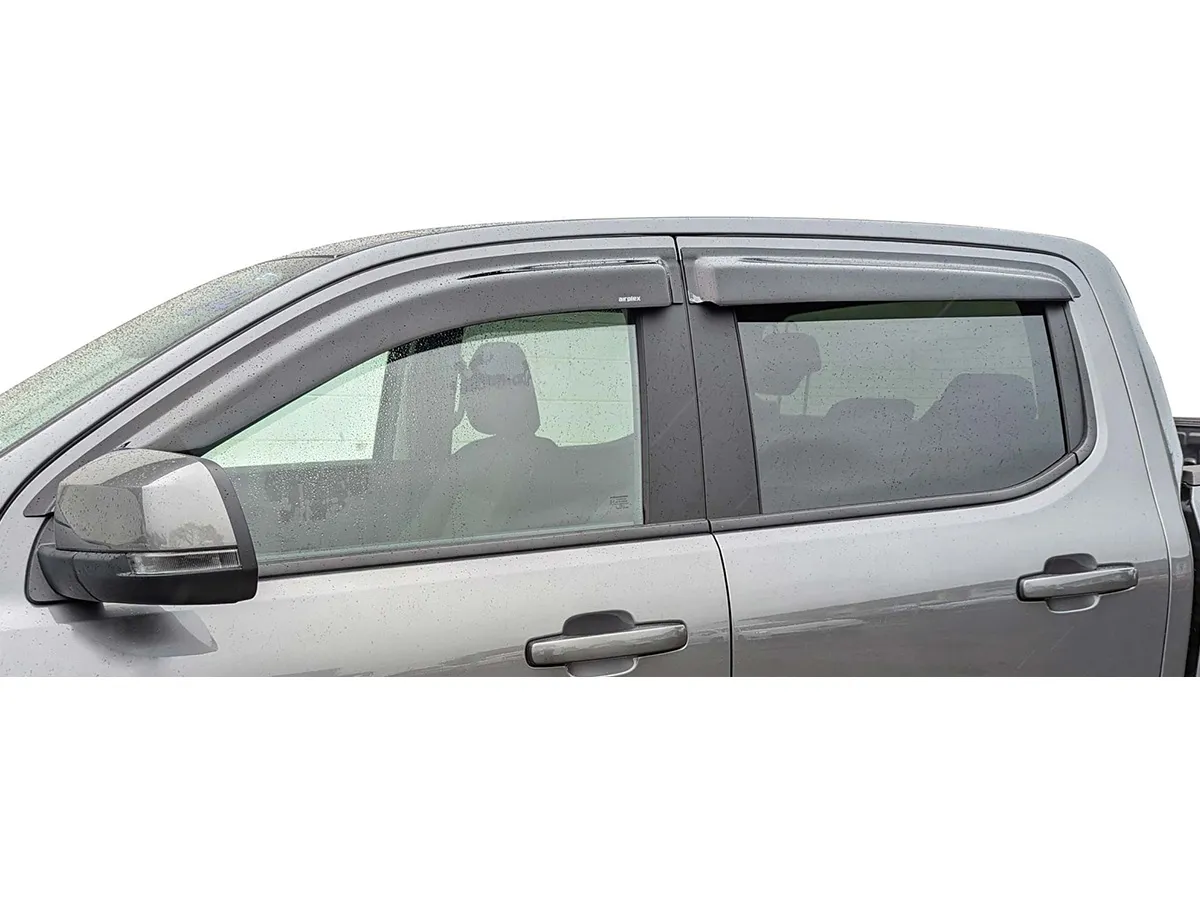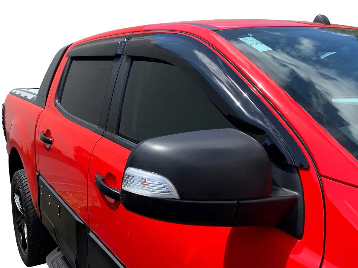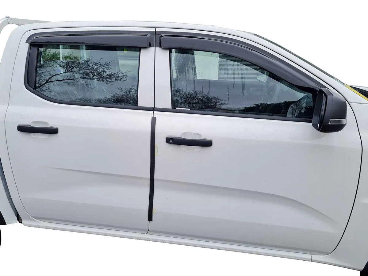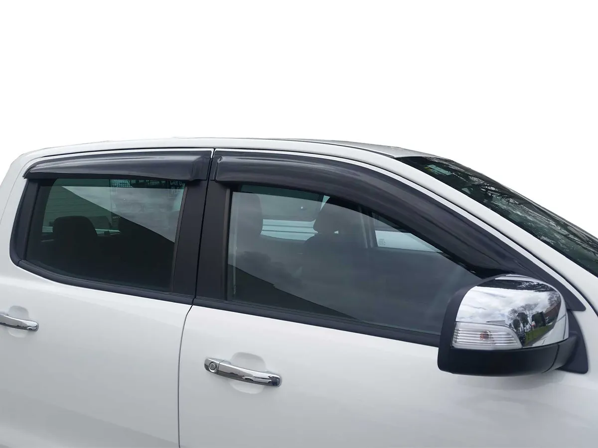 Montage collé - Version pick up double cabine 2012-2022 Ces déflecteurs permettent de rouler les vitres entrouvertes sans subir les effets du vent, de la pluie ou de projections.Idéals pour les escapades en pleine nature, ils assurent une meilleure ventilation de l'habitacle tout en réduisant le bruit aérodynamique.Ils sont conçus pour s'intégrer simplement sur les vitres avant gauche et droite, ainsi que les vitres arrières du véhicule. Livrés en 4 pièces, ils sont fabriqués en acrylique teinté de haute qualité et sont stabilisés contre les rayons UV. Leur système de montage collé par adhésif double face garantit une installation rapide, sans perçage ni outil spécifique, et un maintien fiable dans le temps. Ils offrent une excellente durabilité face aux intempéries et aux conditions extrêmes.Caractéristiques :- Marque : Airplex (Made in New Zealand)- Montage : Fixation collée, adhésif double face 3M (sans perçage)- Emplacement : Vitres avant (conducteur et passager) et arrière- Matériau : Acrylique teinté foncé, haute résistance, stabilisé UV- Finition : Teinte sombre, design Slim, profil affiné et discret- Conditionnement : Jeu de 4 pièces- Usage : Ventilation optimisée, réduction du bruit aérodynamique, confort de conduite amélioré par tous les temps