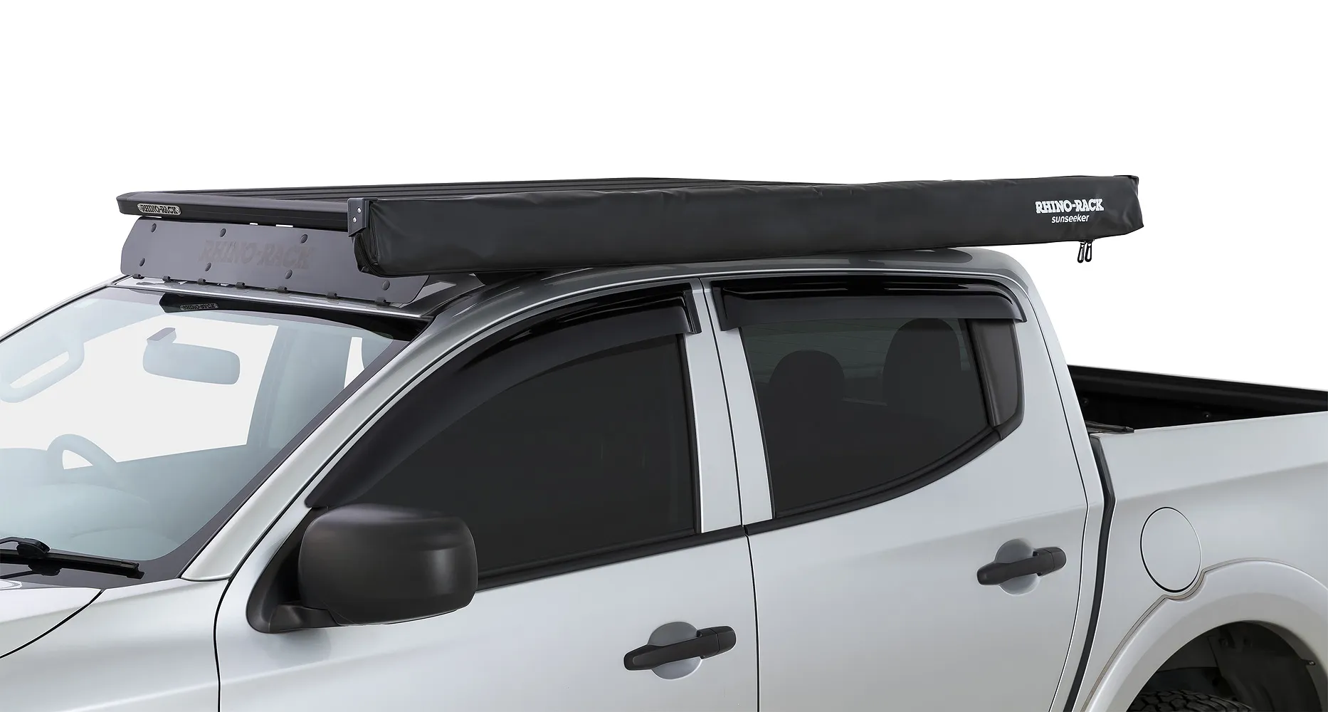 Avec système de fixation rapide STOW iT L'auvent latéral Sunseeker 2x2m de Rhino-Rack est la solution idéale pour profiter instantanément d'un espace ombragé lors de vos aventures en plein air. Facile à déployer, il s'installe sur le côté de votre véhicule et offre une couverture de 4 m² pour se protéger du soleil ou des intempéries. Son tissu ripstop de haute qualité est conforme à la norme CPAI-84, traité contre la moisissure et offre une protection solaire UPF 50+. Pour un espace supplémentaire ou une protection renforcée contre le vent et le soleil couchant, il est possible d'ajouter des parois latérales ou une extension (vendues séparément).Grâce au support STOW iT inclus, l'auvent peut être installé et retiré rapidement pour être stocké lorsque vous ne l'utilisez pas. Le système de fixation breveté Zwifloc permet de monter les supports sans déplacer d'autres accessoires déjà en place, garantissant une flexibilité maximale. Son sac de rangement en PVC imperméable, équipé de fermetures éclair anti-corrosion, assure une protection optimale lorsque l'auvent est replié. Livré avec piquets, cordes de tension et outils, il est prêt à l'emploi dès l'installation.Le Sunseeker 2x2m de Rhino-Rack est un auvent latéral robuste, pratique et durable, parfait pour le camping, les road trips et les expéditions tout-terrain.Caractéristiques :- Dimensions déployées : 2 m x 2 m (4 m² de couverture)- Poids : 9,5 kg- Matériau du tissu : Ripstop résistant, conforme CPAI-84, anti-moisissures et protection solaire UPF 50+- Fixation STOW iT : Permet un montage et démontage rapide pour le stockage- Système Zwifloc : Installation sans déplacer d'autres accessoires sur la galerie- Sac de transport : PVC imperméable avec fermetures éclair inoxydables- Accessoires fournis : Piquets, cordes de maintien et outil de montage
