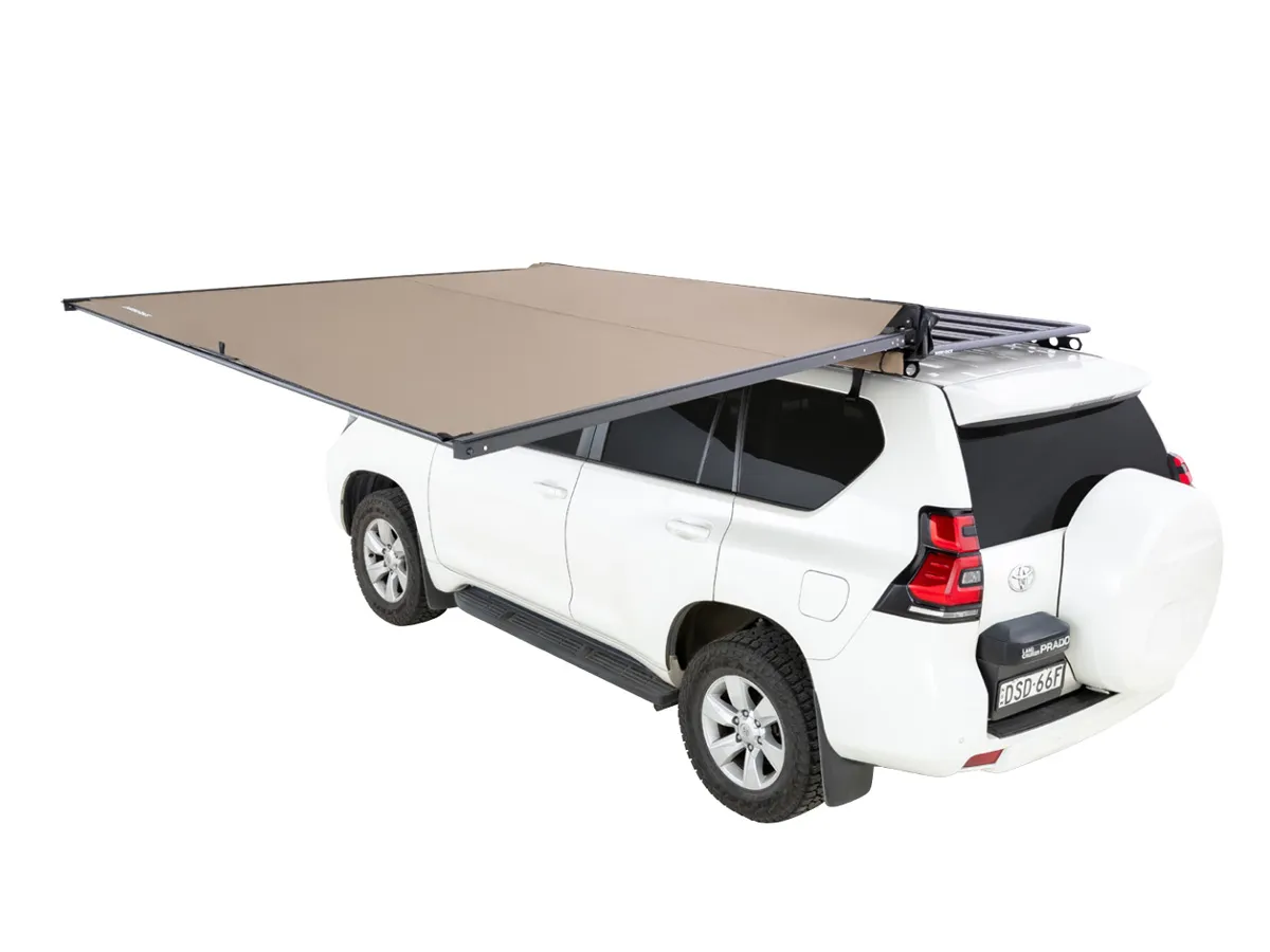 Longueur 2.2m - Longueur dépliée 2m - Ouverture automatique par vérins Compact, léger et redoutablement pratique, le store latéral Sunseeker 2,2 m autoportant de Rhino-Rack constitue une solution d'ombrage idéale pour les aventuriers en quête de simplicité. Conçu pour se fixer sur les barres de toit ou plateformes compatibles de la marque, ce modèle se démarque par sa structure autoportante assistée par vérins à gaz, qui permet un déploiement ultra-rapide et autonome, sans manipulation complexe.Une fois replié, le store mesure 2,2 mètres de long et s'intègre discrètement à la ligne du véhicule. À l'ouverture, il s'étend sur 2 mètres depuis le flanc, couvrant une surface totale de 4 m². Grâce aux poteaux intégrés dans les bras articulés et au soutien des vérins, l'installation est intuitive et le maintien est assuré sans avoir besoin de piquets immédiats, même lors d'une utilisation sur sol dur.Le tissu technique utilisé est un polycoton ripstop 280 g/m², réputé pour sa solidité, son imperméabilité (2000 mm) et sa protection solaire certifiée UPF50+. Le store est protégé, une fois replié, par une housse en polyester tissé imperméable, conçue pour résister à l'humidité, à la poussière et aux vibrations du tout-terrain.Le Sunseeker 2.2 est livré prêt à l'usage avec tous les accessoires nécessaires : supports de montage, piquets, cordes et ses poteaux autoportants repliables. Il est également compatible avec des parois latérales (vendues séparément), pour une configuration modulaire selon les besoins.Caractéristiques :- Type de produit : store autoportant latéral Sunseeker 2.2m- Dimensions replié : 2,2 m- Dimensions déployé : 2 m de portée latérale- Surface couverte : 4 m²- Poids : 15,5 kg (hors supports)- Tissu : polycoton ripstop 280 g/m²- Étanchéité : 2000 mm colonne d'eau- Protection UV : UPF50+- Fixation : compatible avec barres Rhino-Rack Vortex, Heavy Duty, Reconn-Deck, plateformes Pioneer- Structure : bras articulés avec poteaux intégrés et vérins à gaz – autoportant- Accessoires inclus : supports de montage, piquets, cordes, housse de transport étanche- Évolutivité : compatible avec parois latérales (vendues séparément)