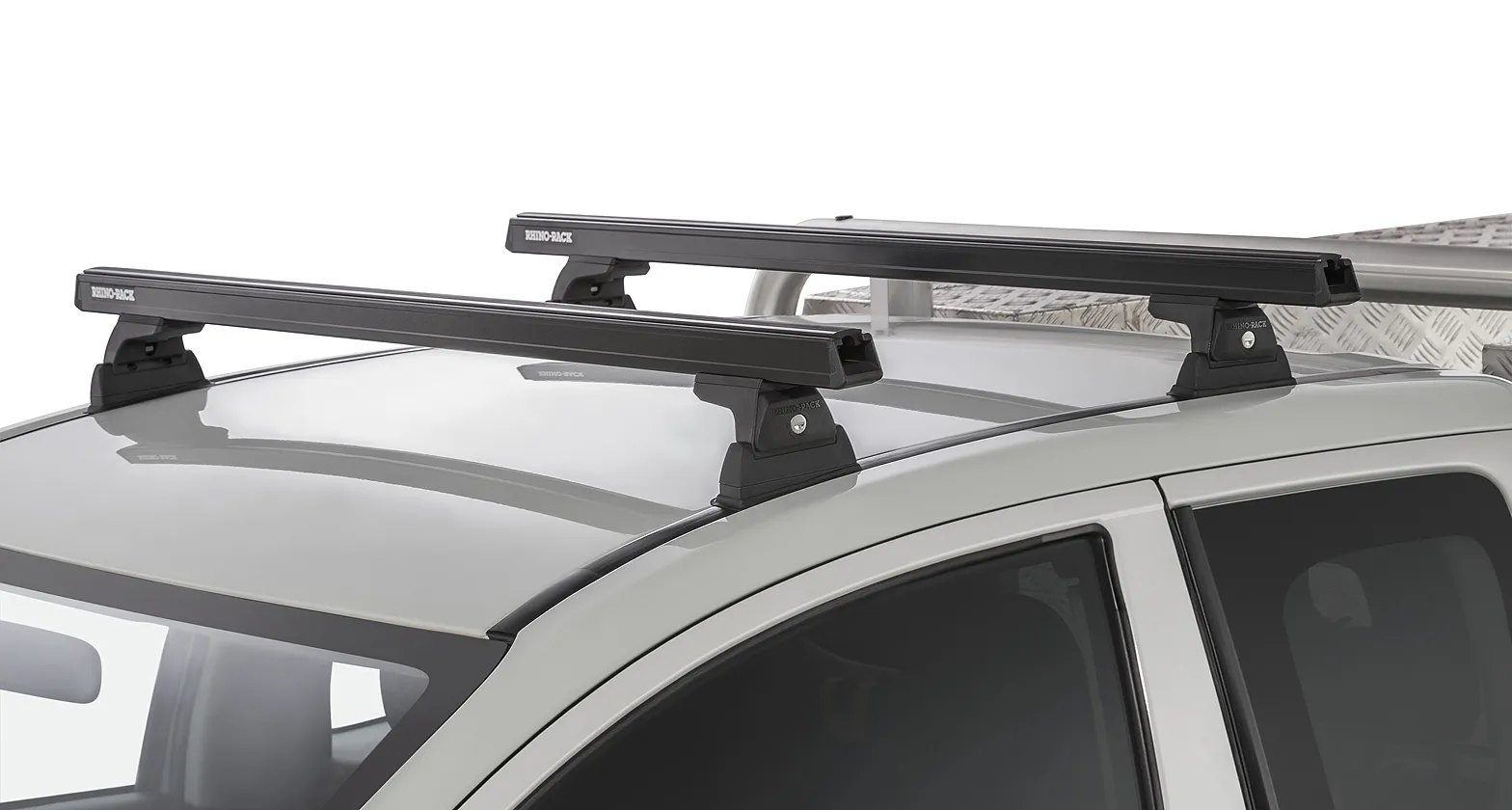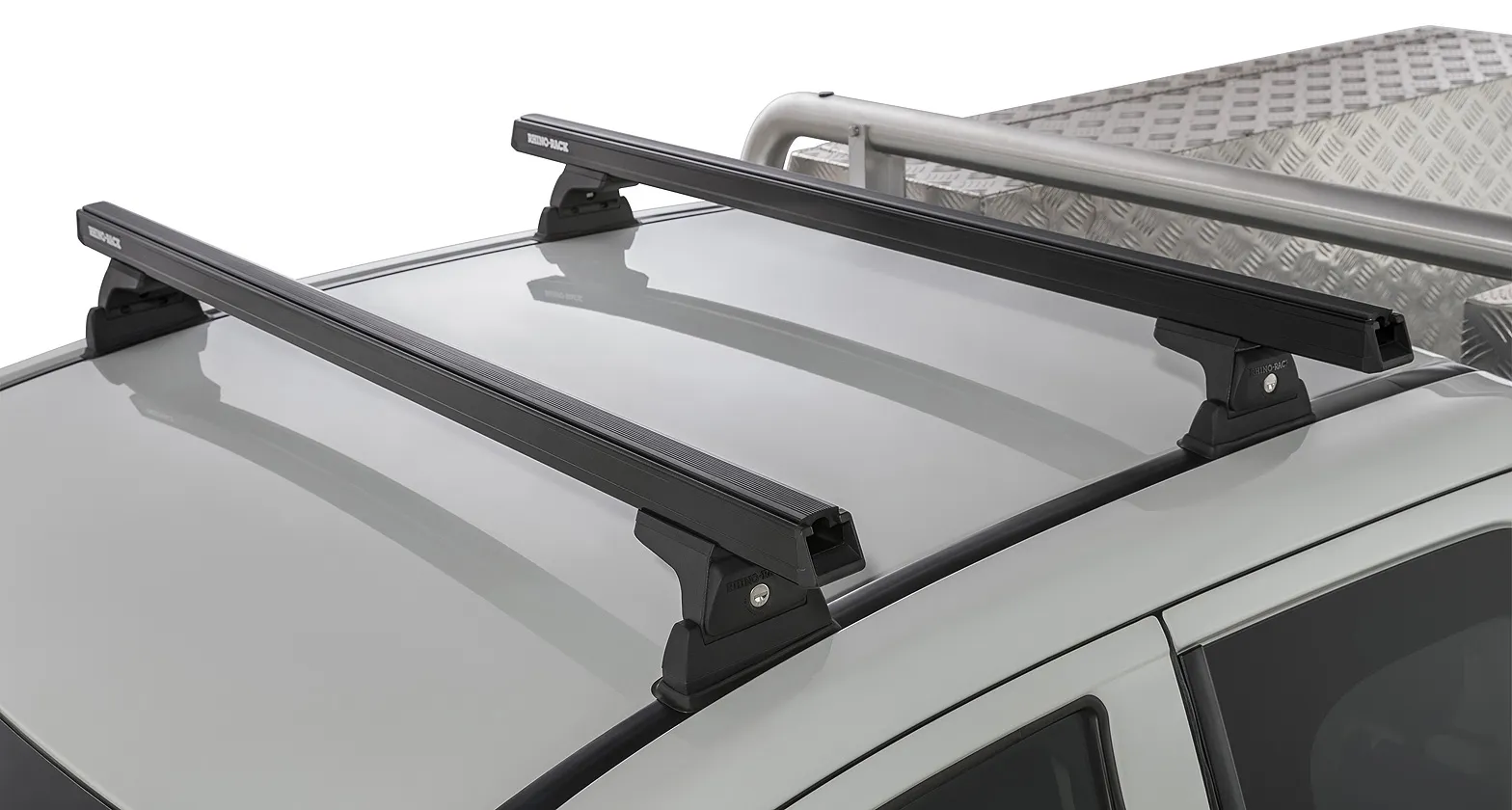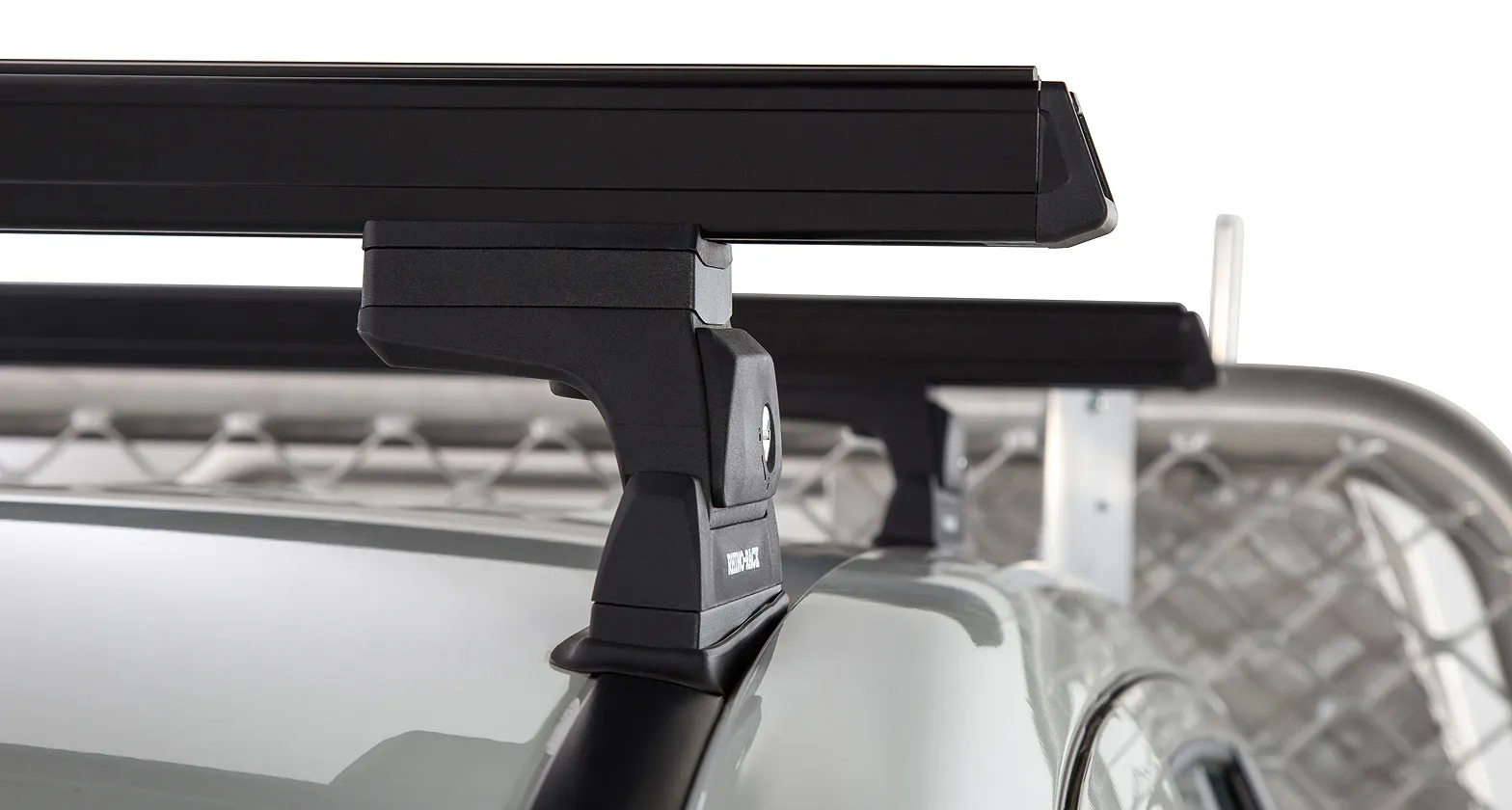 Montage sur pick-up double cabine Le système de galerie de toit RLT600 Ditch Mount robuste s'adapte parfaitement dans la gouttière de toit de votre véhicule. Une fois installés, les pieds et les barres transversales peuvent être facilement retirés lorsqu'ils ne sont pas nécessaires grâce à un système de verrouillage à déclenchement simple.