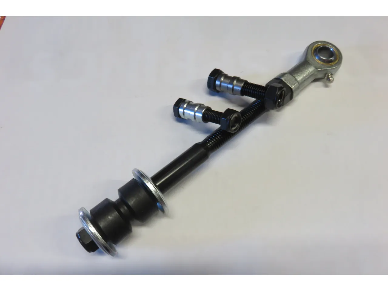 Avec silent blocs et rondelles - La pièce - Recouper la biellette pour ajustement à la réhausse du véhicule. Recouper la biellette pour ajuster la longueur à la réhausse du véhicule. Biellette rallongée réglable compatible : Avant et arrière Nissan Patrol Y60 Avant et arrière Nissan Patrol Y61 (sauf biellette déconnectable) Arrière Toyota Land Cruiser KDJ120 KDJ125 (sauf KDSS) Arrière Toyota Land Cruiser KDJ150 KDJ155 (sauf KDSS)