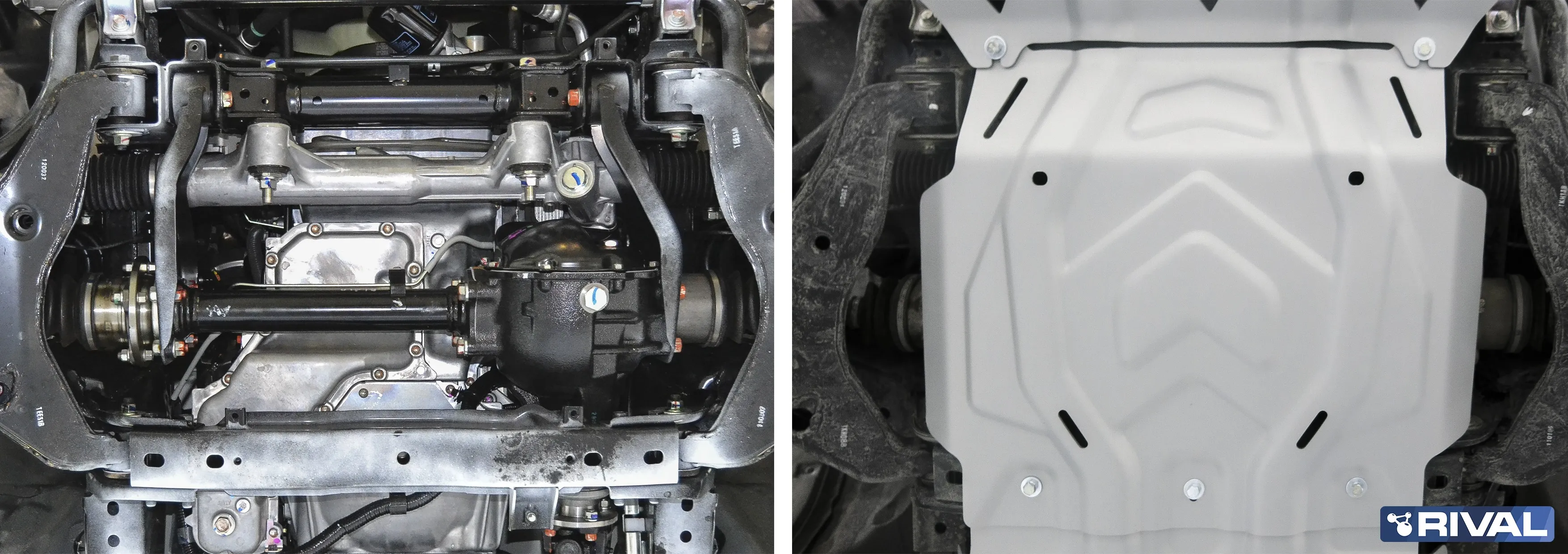 Les plaques de protection en aluminium RIVAL sont découpées au laser de haute précision puis embouties à froid. Ces blindages offrent une solution légère et ultra résistante qui vous garantira une protection de l’ensemble des éléments sensibles sous votre véhicule contre les chocs, les cailloux, ou les branches.