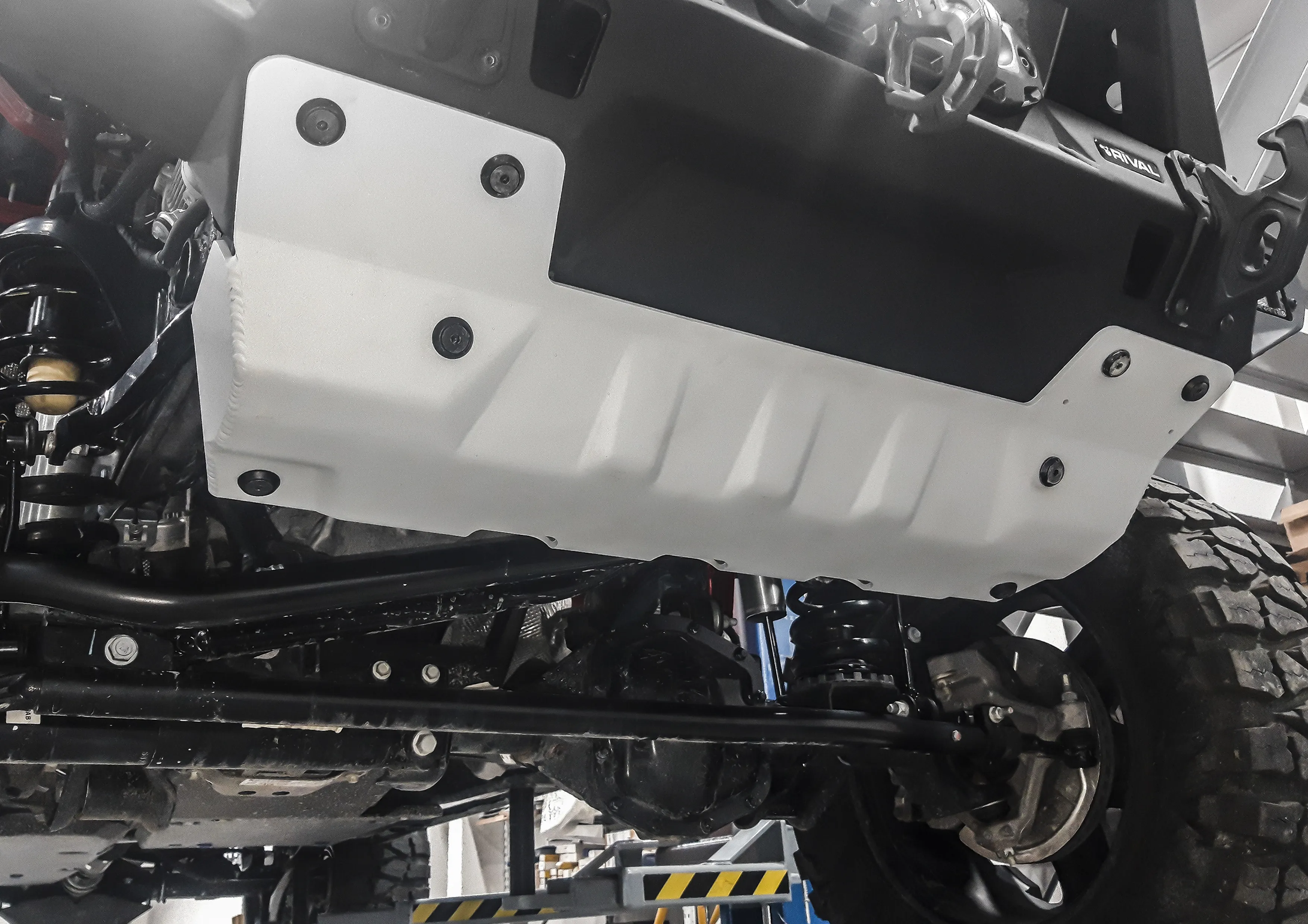 Les plaques de protection en aluminium RIVAL sont découpées au laser de haute précision puis embouties à froid. Ces blindages offrent une solution légère et ultra résistante qui vous garantira une protection de l’ensemble des éléments sensibles sous votre véhicule contre les chocs, les cailloux, ou les branches.