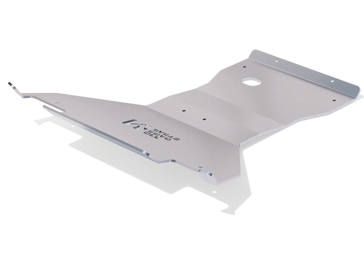 Blindage moteuren aluminium de 8mm - avant Compatible avec les véhicules :Ford Ranger Raptor à partir de 2023 en 2.0Ecoblue Diesel ou 3.0 V6 Ecoboost essence Protège tous les organes mécaniques entre le pare-chocs et l'arrière du berceau avant. Vis affleurantes - Trou de vidange. Montage sans modification du véhicule. Kit complet comprenant : Tôle de protection Nécessaire de montage Visserie Notice