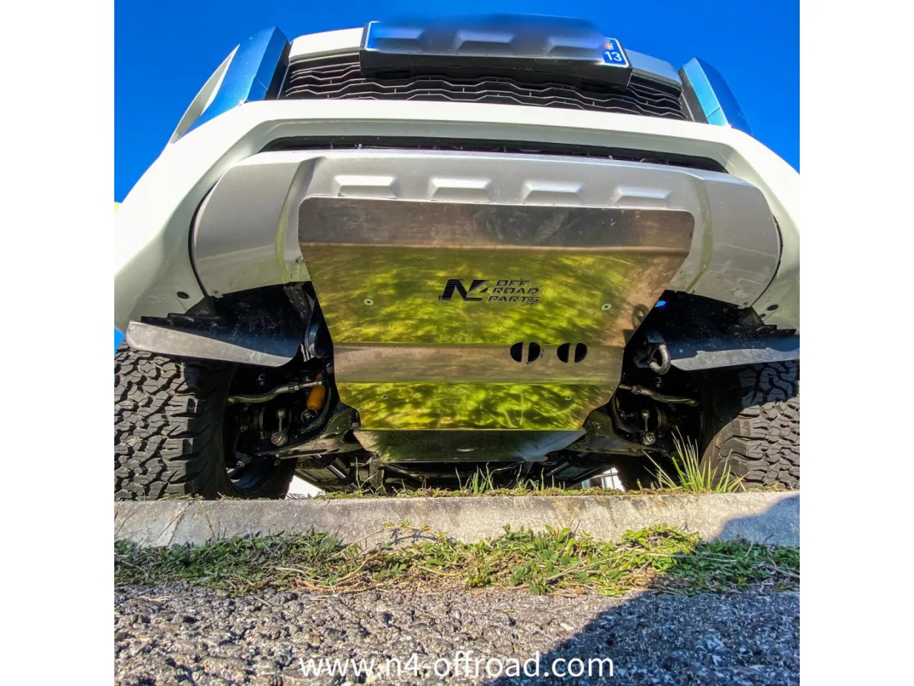 Blindage moteur en aluminium de 8mm - avant Protège tous les organes mécaniques entre le pare-chocs et l'arrière du berceau avant Compatible avec les véhicules : Mitsubishi L200 après 2015 toutes versions Vis affleurantes - Trou de vidange. Montage sans modification du véhicule. Kit complet comprenant : Tôle de protection Nécessaire de montage Visserie Notice