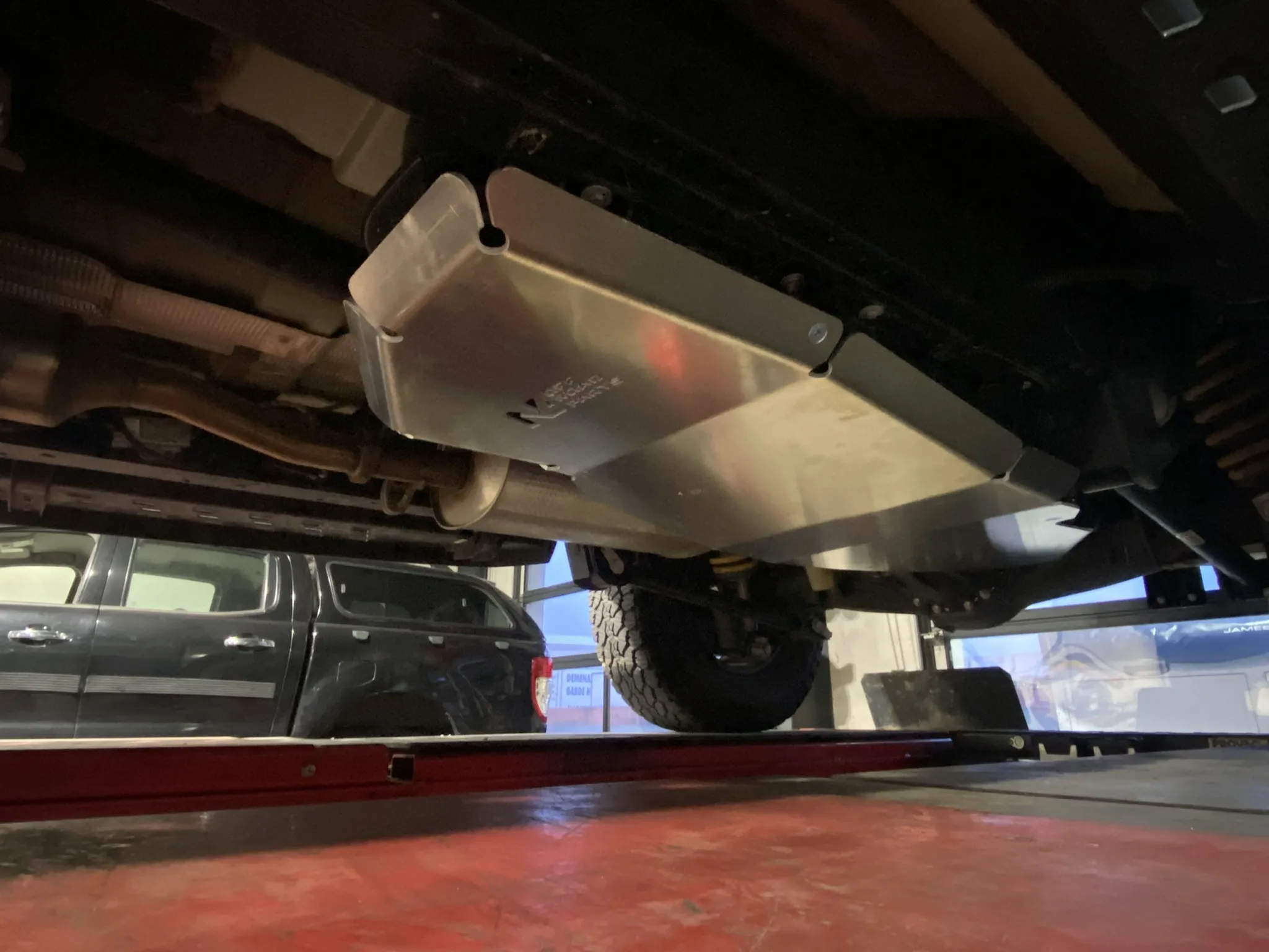Blindage de réservoir de carburant en aluminium de 6mm Compatible avec les véhicules :Ford Ranger Raptor 2.0 TDCI Se fixe sur les fixations d'origine du réservoir (4 points de fixations) Kit complet comprenant : Tôle de protection Nécessaire de montage Visserie Notice