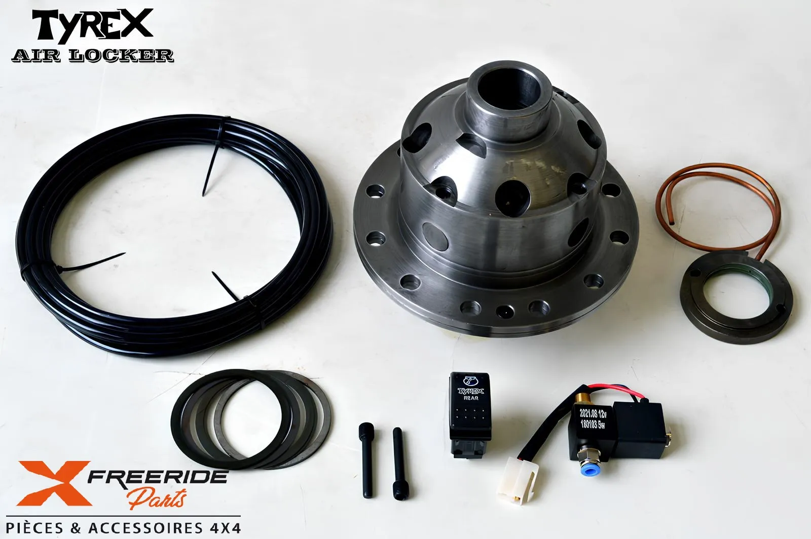 Il offre une plus grande robustesse que le différentiel standard et la possibilité d'être bloqué par air, à l'aide d'un compresseur spécifique, Tyrex ou autres marques.