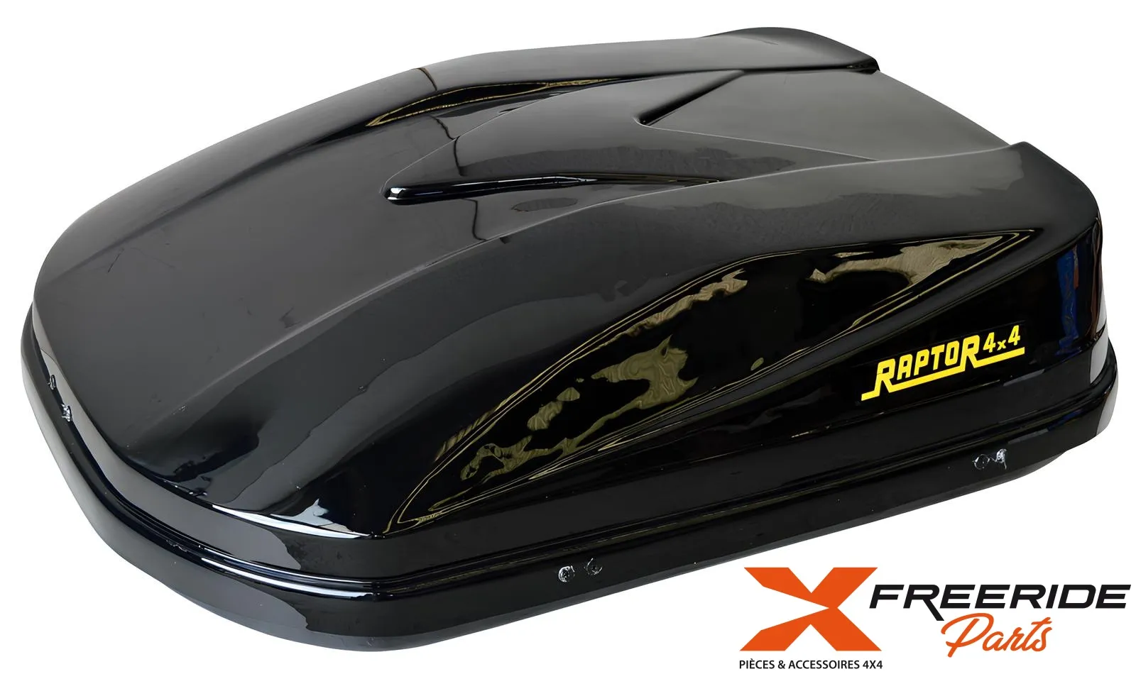 Coffre de toit Raptor4x4 en ABS laqué GLOSS BLACK d'une capacité de 320 litres