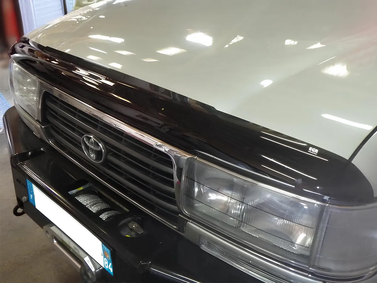 Déflecteur de capot EGR – Finition fumée Le déflecteur de capot EGR est un accessoire conçu pour limiter l'impact des projections sur la partie frontale du véhicule. Installé sur le bord avant du capot moteur, il réduit significativement les traces d'insectes, les impacts de gravillons et les éclaboussures sur le pare-brise et la carrosserie. Fonction Ce déflecteur modifie légèrement le flux d'air en conduite, créant une déviation qui protège efficacement le capot et le pare-brise des projections directes. Il contribue ainsi à préserver la peinture, à améliorer la visibilité et à réduire l'encrassement du pare-brise en circulation mixte ou autoroutière. Conception et matériaux Le déflecteur est fabriqué en acrylique moulé teinté dans la masse, avec une finition fumée discrète. Ce matériau est rigide, résistant aux UV, et adapté aux variations de température. Sa forme est spécifique à chaque modèle de véhicule pour garantir un ajustement précis sans interférer avec l'ouverture du capot. Installation Le montage s'effectue généralement sans perçage, à l'aide de clips ou supports spécifiques fournis selon les versions. L'installation est simple, sans modification permanente du véhicule, et entièrement réversible si nécessaire.