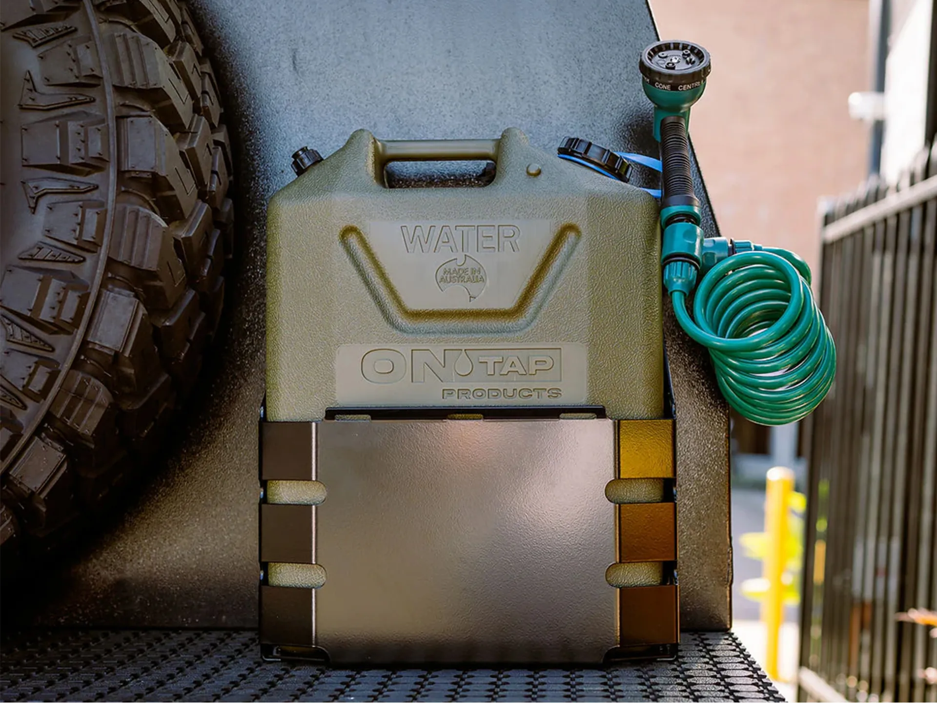 Style drop-in Le support noir de Jerry Can 22L d'Ontap est l'accessoire parfait pour sécuriser et transporter votre douche portable Ontap ou tout autre jerrican compatible de 22 litres. Conçu en partenariat avec Ibuilt Kits, ce support est 100 % fabriqué en Australie, gage de qualité et de durabilité. Sa construction en aluminium marin de 3 mm découpé au laser assure une résistance exceptionnelle sans soudure, éliminant ainsi les risques de fissures liés aux vibrations ou à la fatigue du matériau.Revêtu d'une peinture poudre noire satinée de qualité professionnelle, ce support résiste à la décoloration, au farinage et à la corrosion, même dans les environnements les plus exigeants. Livré avec tout le nécessaire de fixation et des instructions claires, il est facile à installer et garantit une tenue sécurisée lors de vos déplacements en véhicule 4x4 ou van.Sa conception sans soudure et sa finition anticorrosion garantissent une longévité accrue, tandis que sa compatibilité parfaite avec les douches portables Ontap vous permet de transporter votre jerrican en toute sécurité, même sur terrains accidentés.Caractéristiques :- Couleur : Noir- Dimensions : 303 mm (Hauteur) x 361 mm (Largeur) x 196 mm (Profondeur)- Matériau : Aluminium marin de 3 mm, découpé au laser (sans soudure)- Fabrication : Produit australien conçu par Ibuilt Kits pour Ontap- Finition : Peinture poudre satinée noire anti-décoloration et anticorrosion- Poids : 2,75 kg (léger et robuste)- Accessoires inclus : Kit de montage complet avec instructions détaillées- Livré sans jerrican