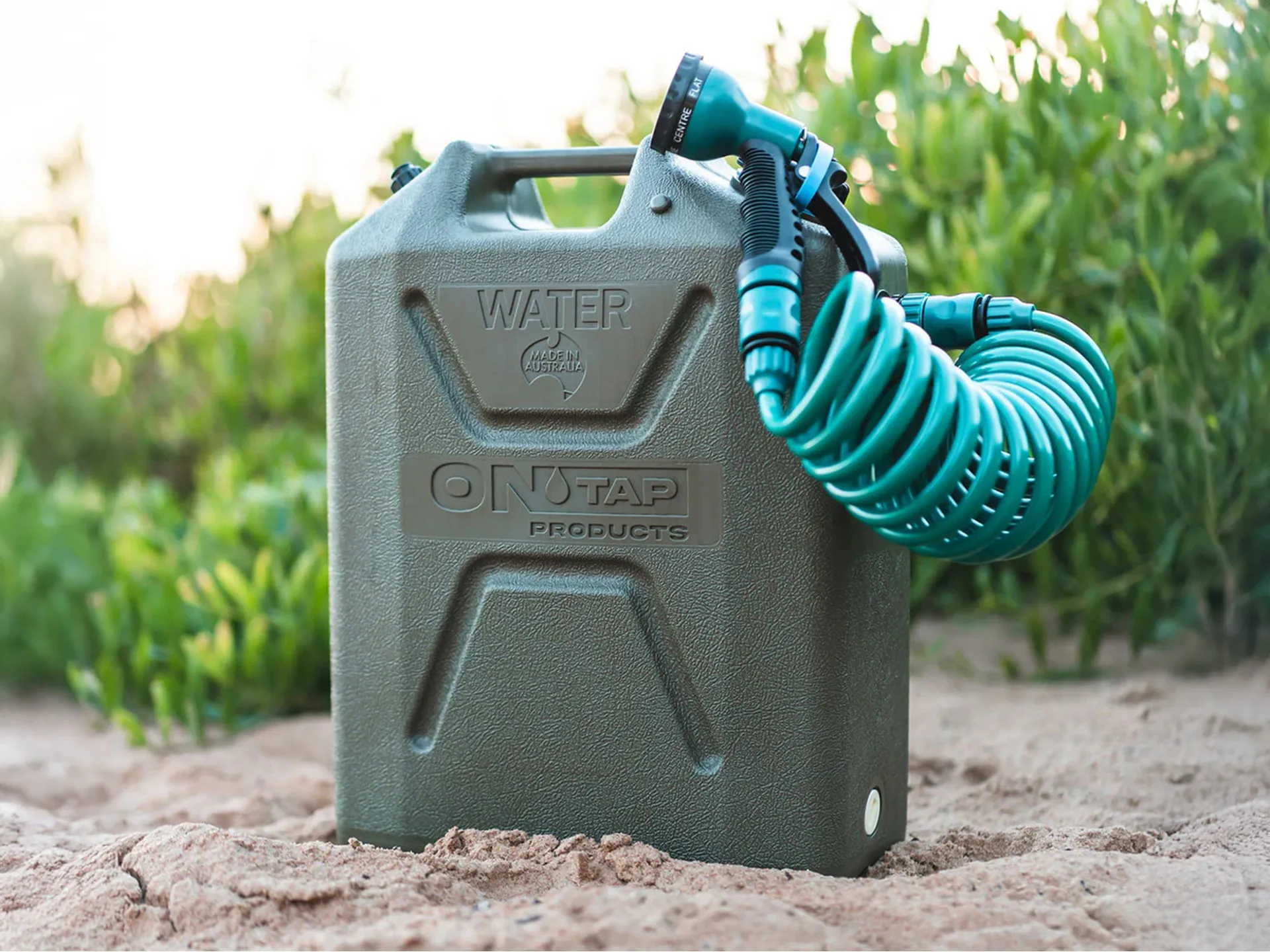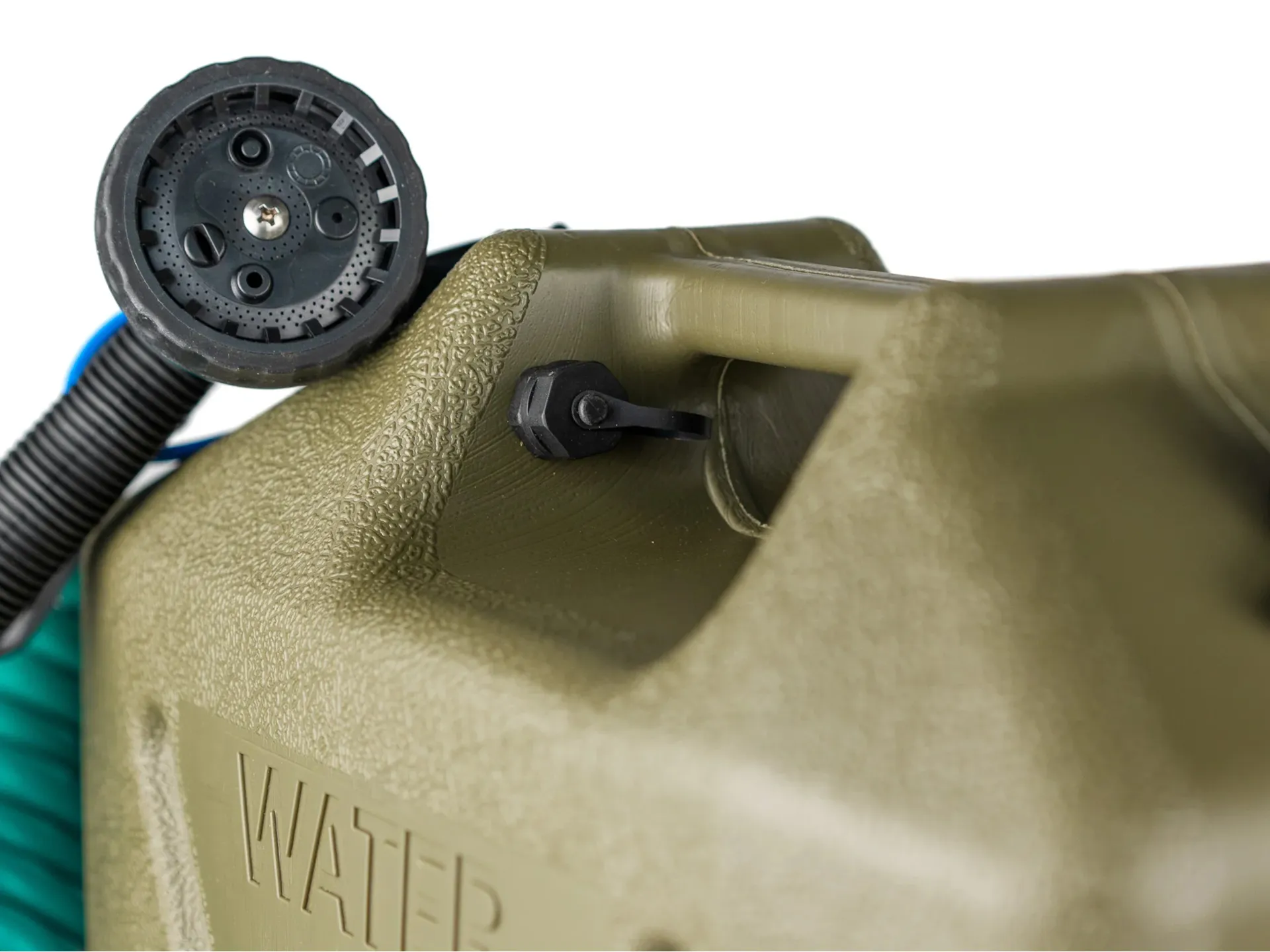 Avec prise allume-cigare 12v La douche portable Jerry Can 22L 12v Ontap verte a été spécialement conçue et fabriquée en Australie pour offrir une solution pratique aux amateurs d'aventures offroad. Que vous soyez surfeur, campeur, amateur de plage ou adepte de sports extérieurs, elle est l'alliée idéale pour rincer votre matériel ou vous-même où que vous soyez. Avec son jerrican de 22 litres en polyéthylène haute densité (HDPE) alimentaire et stabilisé aux UV, cette douche portable est solide, durable et parfaitement adaptée aux environnements exigeants.Son utilisation est simple et rapide : il vous suffit d'insérer le cordon d'alimentation 12V dans l'allume-cigare de votre véhicule, d'activer l'interrupteur et de profiter jusqu'à 5 minutes de jet continu. Finis les désagréments des douches publiques bondées en été ! Grâce à sa pompe intégrée délivrant un débit de 12 litres par minute et son pistolet multi-fonctions à 7 modes de pulvérisation, vous bénéficiez d'une expérience de rinçage pratique et efficace. Sa teinte verte permet à la douche portable de se fondre naturellement dans les environnements extérieurs, tels que les forêts, les campings ou les zones naturelles. La douche portable Ontap The Original bénéficie du brevet australien 2021105556. Sa conception compacte et ergonomique la rend facile à transporter et à utiliser.Caractéristiques :- Capacité : 22 litres- Couleur : Vert- Dimensions : 17,9 cm (largeur) x 34,8 cm (longueur) x 46,0 cm (hauteur)- Matériau : Jerrican vert en polyéthylène haute densité (HDPE) alimentaire, stabilisé aux UV- Autonomie : Jusqu'à 5 min de douche/jet continu- Pompe intégrée : Débit de 12 litres/minute- Alimentation : Cordon d'alimentation 12V détachable avec prise allume-cigare (inclus)- Longueur du câble : 4 m- Consommation : Puissance maximale de 4,5 A- Connecteur : Raccord rapide de tuyau d'arrosage standard- Pistolet de pulvérisation : 7 fonctions pour divers modes de jet - Accessoires inclus : Pompe, tuyau, pistolet multi-jets, robinet, bouchon, câble d'alimentation et capuchon anti-poussière