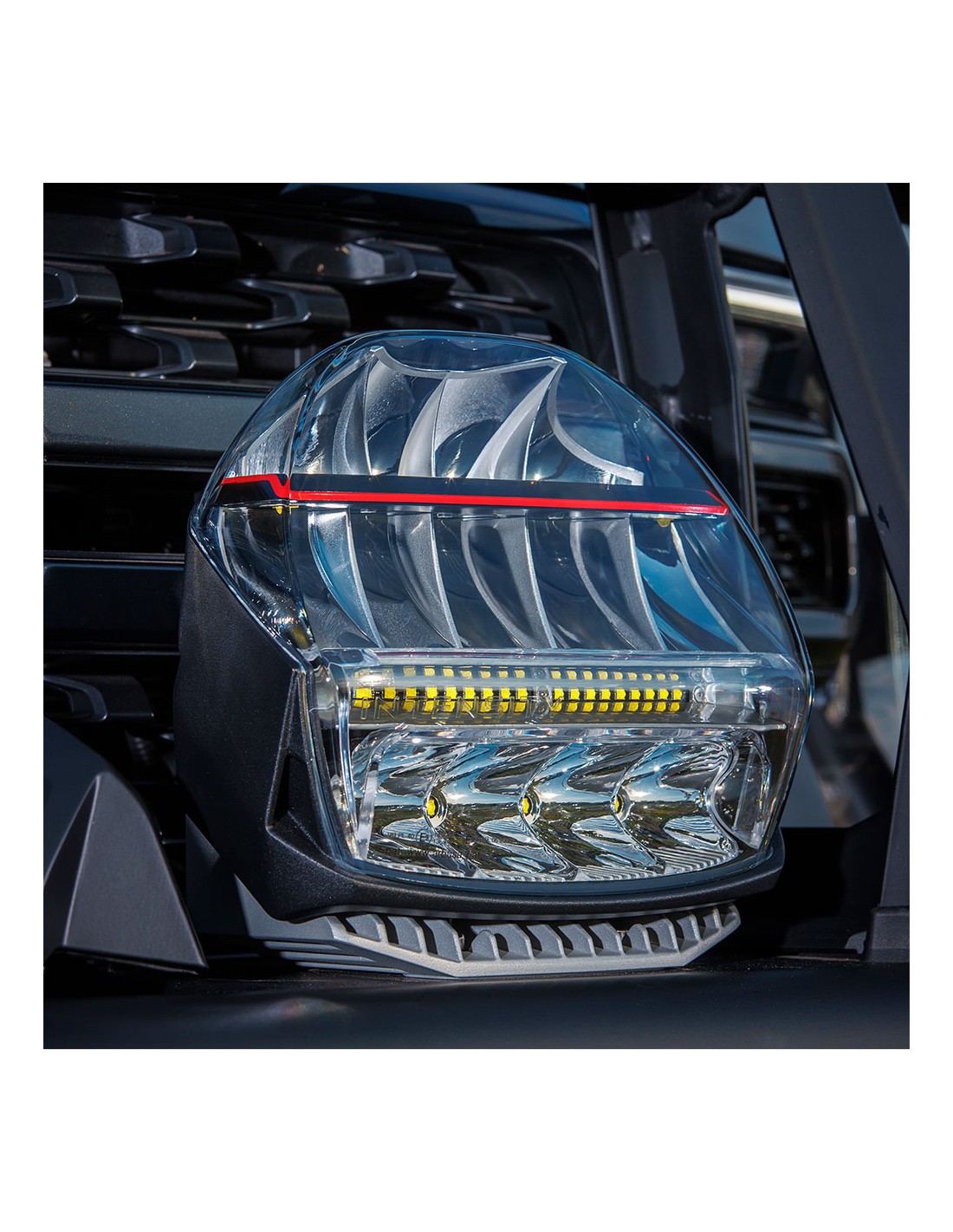 Une conception unique à 4 optiques (Super Spot, Spot, Flood et Midrange) est utilisée pour fournir une sélection virtuellement illimitée de faisceaux lumineux pour s'adapter à toutes les conditions de route.