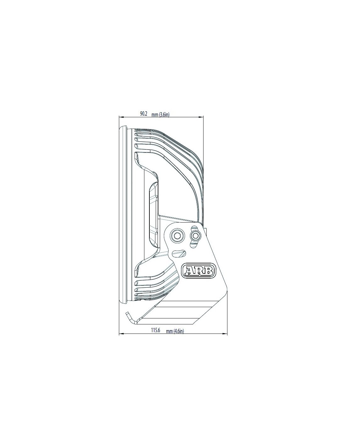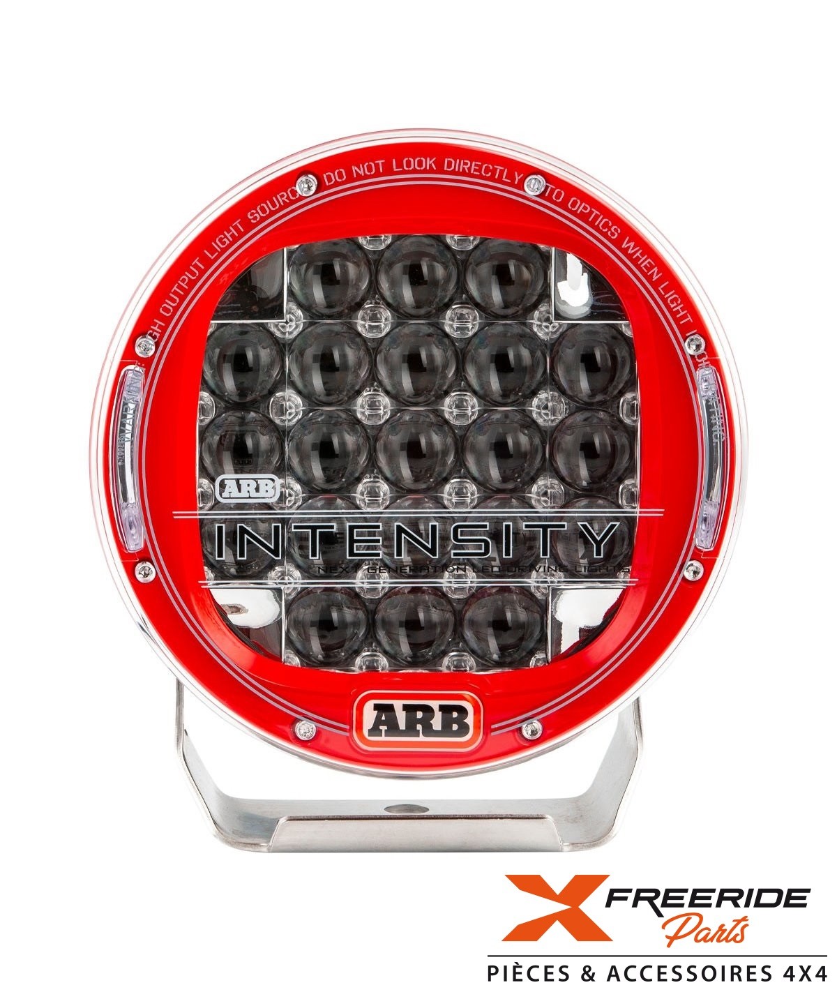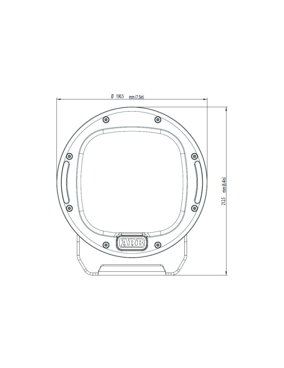 Éclairage ARB haute intensité avec 21 et 32 LED, et un diamètre extérieur de 190 mm et 220 mm et 250 mm et 210 mm de haut, y compris le support de fixation. Il a un joint en caoutchouc entre la lentille en polycarbonate et le corps de la lampe frontale (en aluminium) qui, avec le système GORE® et les connecteurs électriques scellés, assure une étanchéité IP68 qui permet une immersion jusqu'à 3 m (10 pi).