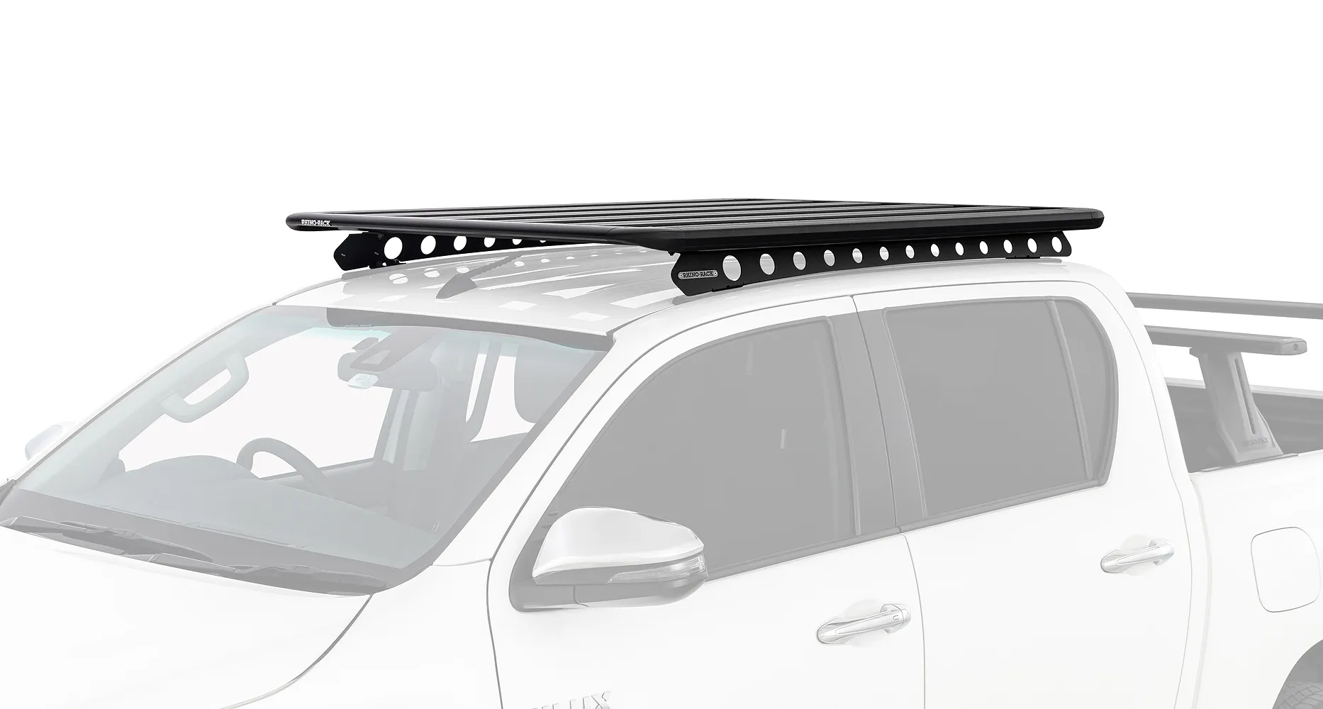 Montage sur pick-up double cabine Le système de montage Pioneer 6 galerie et Rhino-Rack Backbone est le système de galerie de toit ultime qui étend vos aventures, pas seulement les capacités de votre véhicule. Conçu pour être le sommet de l'ingénierie, la galerie Pioneer 6 est un bond en avant par rapport à nos prédécesseurs déjà impressionnants et défie les limites de l'aérodynamique et de la durabilité. La galerie Pioneer 6 en conjonction avec le Rhino-Rack Backbone a été associée pour une expérience d'aventure ultime.