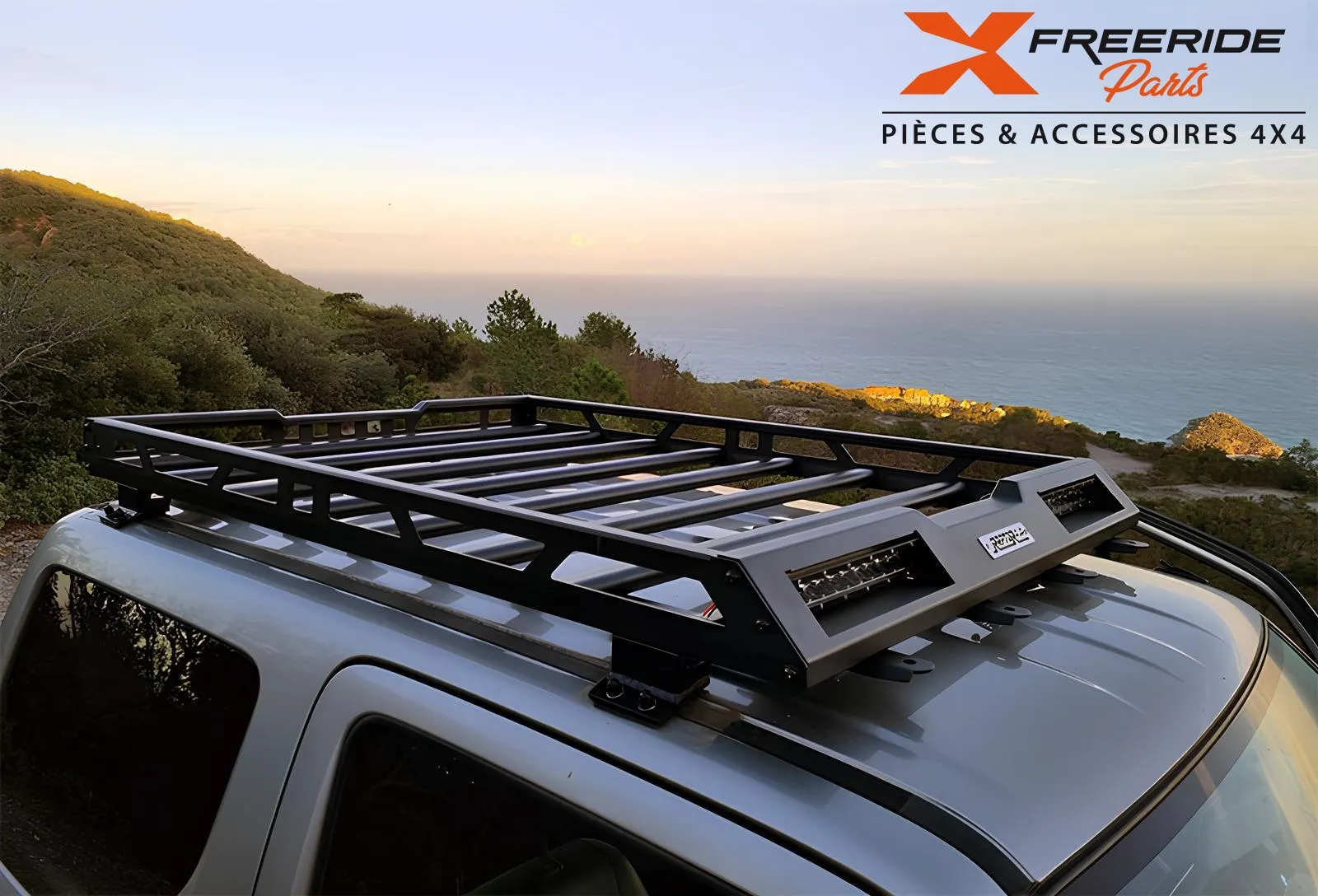 Apportez une touche à la fois esthétique et fonctionnelle à votre Jimny avec la galerie de toit Raptor4x4. Spécialement conçue pour résister aux rudiments des aventures tout-terrain ou des raids, cette galerie allie résistance et praticité. Elle s’installe rapidement en utilisant les fixations d’origine de votre véhicule, sans nécessiter de modifications.