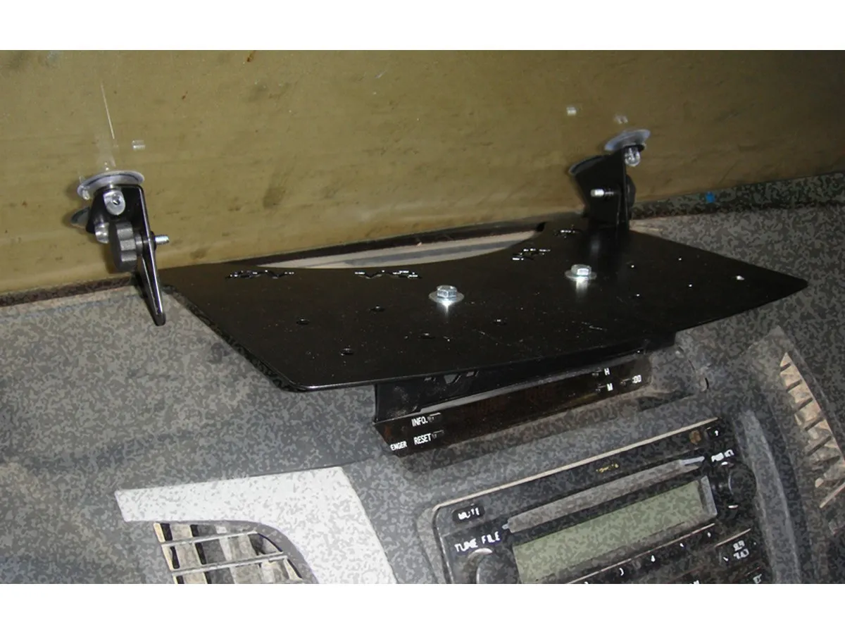 Plateau de 320 x 160 mm Platine supports instruments de navigation N4-Offroad C'est le support de montage au dessus du tableau de bord essentiel à la lisibilité de vos différents systèmes de navigation et communication lors de vos voyages Fixation avec des ventouses côté pare brise Plateau de 320mm x 160mm pour le montage d'instruments de navigation (GPS, Tripmaster Terratrip, VHF, CB, Compas, Boussole, Boule Ram Mount) Montage sans modification du véhicule Livré peint epoxy noir avec kit de montage, notice et visserie