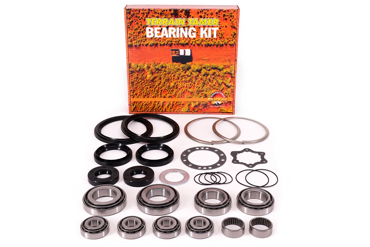 Kit de réfection complet - Terrain Tamer AVEC roulements de roue Ce kit complet de pivot signé Terrain Tamer offre une solution de haute qualité pour la réfection des pivots avant, avec tous les composants nécessaires à une remise en état fiable et durable. Conçu pour résister aux conditions les plus exigeantes, ce kit est assemblé selon les standards stricts du constructeur d'origine, garantissant robustesse, précision et longévité. Caractéristiques principales : Kit complet prêt à monter : inclus tous les joints, bagues d’étanchéité, roulements, cales et fixations nécessaires pour une réfection complète. Composants de haute qualité : pièces internes (roulements, joints) sourcés auprès de fabricants japonais réputés tels que Koyo ou NTN, assurant une performance fiable et durable. Assemblé et testé par Terrain Tamer : chaque kit est contrôlé selon des procédures rigoureuses qui répondent ou dépassent souvent les spécifications d’équipement d’origine. Conception robuste pour usage intensif : idéal pour des applications exigeantes, offrant une durabilité accrue et une excellente fiabilité à long terme. Avantages clés : Améliore la fiabilité des pivots et réduit l’usure prématurée. Permet une réfection complète avec pièces compatibles entre elles. Produit conforme aux standards de qualité Terrain Tamer, marque reconnue dans le domaine du tout-terrain.