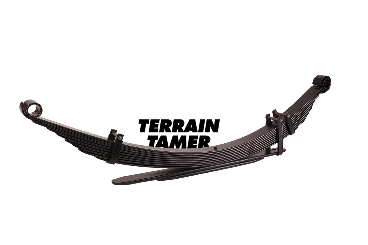Lames de ressort renforcées & réhaussées – Terrain Tamer La paire Les lames de ressort renforcées Terrain Tamer apportent une suspension plus solide et plus endurante, idéales pour une réhausse ou pour supporter des charges importantes. Description : Ces lames de ressort renforcées sont conçues pour améliorer l’efficacité et la résistance du système de suspension. Elles offrent une meilleure stabilité, un comportement plus maîtrisé et une robustesse accrue face aux contraintes liées à un usage intensif. Fabriquées selon les exigences de qualité Terrain Tamer, elles représentent une solution fiable pour remplacer des lames fatiguées ou pour équiper un véhicule destiné aux utilisations exigeantes. Caractéristiques techniques : - Fabrication en acier haute résistance - Traitement thermique pour une longévité optimale - Conception multicouches pour une solidité renforcée - Protection anti-corrosion et finition soignée - Géométrie étudiée pour une performance constante - Conçues pour un montage précis et durable Vendues par paire Avantages : - Amélioration significative de la stabilité - Capacité de charge supérieure - Meilleure résistance à l’affaissement - Conduite plus confortable et sécurisante - Parfaitement adaptées à un usage tout-terrain - Durabilité accrue par rapport aux lames standard - Produit de qualité origine Terrain Tamer Les lames de ressort renforcées constituent un élément essentiel pour fiabiliser et améliorer la suspension d’un véhicule. Leur conception robuste permet de supporter des charges plus importantes tout en conservant un comportement stable et équilibré, aussi bien sur route que sur pistes difficiles. Elles sont particulièrement adaptées aux préparations tout-terrain et aux véhicules utilisés dans des conditions exigeantes. Grâce à leur fabrication en acier de haute qualité et à leur traitement spécifique, ces lames de ressort offrent une excellente résistance dans le temps. Elles contribuent à maintenir une hauteur de caisse constante, à améliorer le confort de conduite et à renforcer la fiabilité générale de la suspension. Solution idéale pour un remplacement durable ou une amélioration technique, elles garantissent performance, solidité et tranquillité d’utilisation.