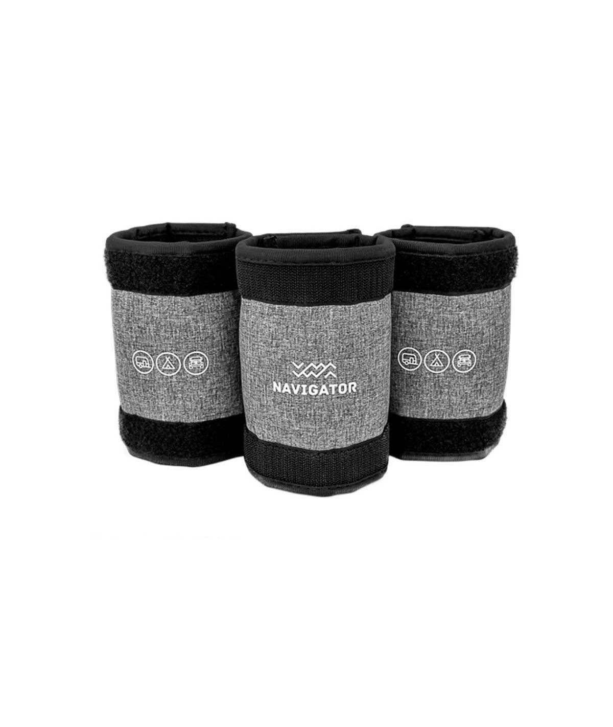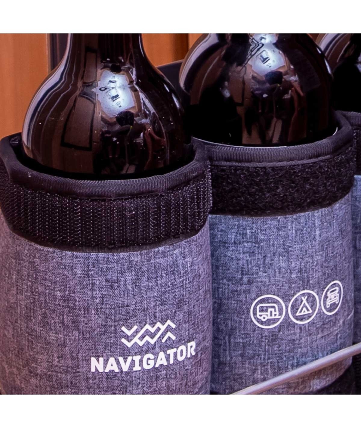 Plus besoin de cogner entre les bouteilles et les bocaux en verre sur la route. Cette solution Navigator permet d'enrouler les flacons ou pots en verre dans le néoprène en restant parfaitement ajustés à leur taille. Chaque protecteur possède des bandes velcro pour pouvoir regrouper les bouteilles et pots sans avoir à les frapper.