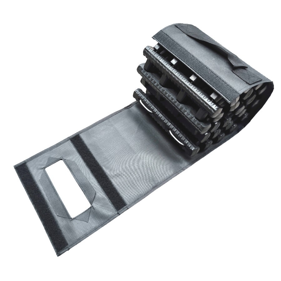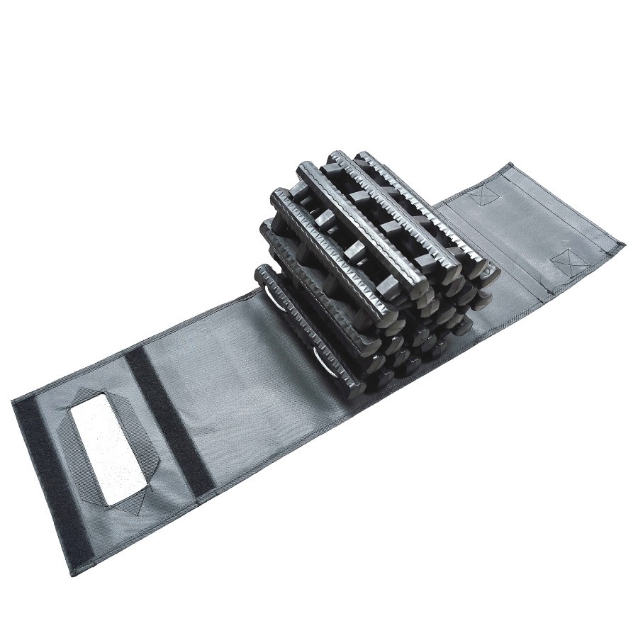 Elle peut être enroulée: la taille de la chenille ou de la planche de traction est de 100 x 21 cm, épaisseur 2,5 cm, poids 3.8kg