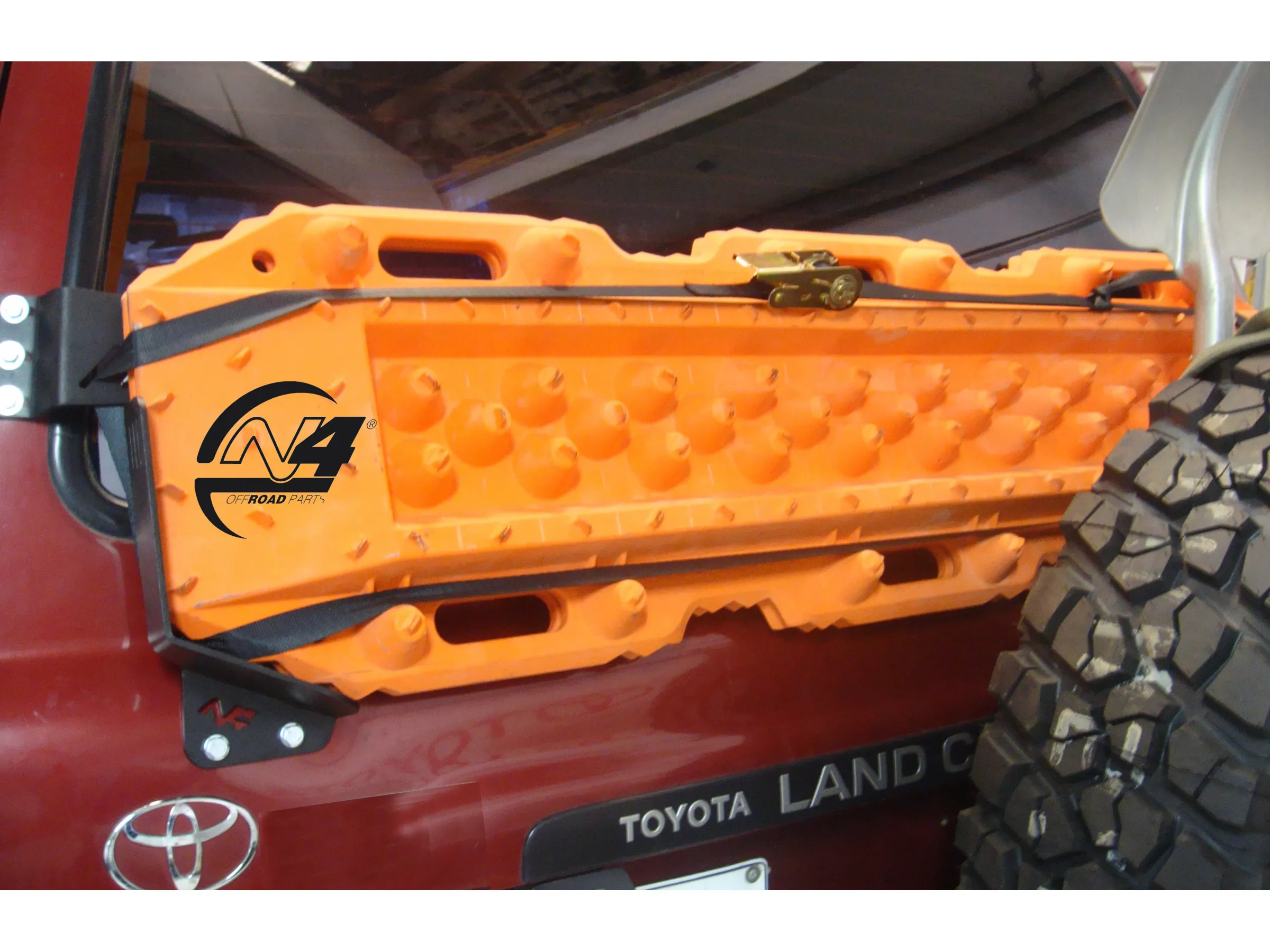 Pour 2 à 4 plaques Ce kit permet de transporter facilement une ou deux paires de plaque de désensablage Maxtrax sur le hayon de votre 4x4 Grace à cette installation les plaques sont d'un accès très facile et rapide Forme spécifique pour accueillir les plaques de marque Maxtrax Le maintient des plaques est assuré par une sangle à cliquets et des vérins de hayon renforcés permettent l'ouverture du hayon malgré le supplément de poids Le montage nécessite le perçage du hayon et le démontage du balai d'essuie-glace arrière,