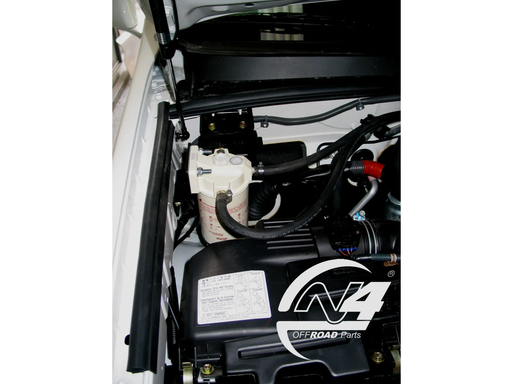 Support pour le montage coté passager d'un préfiltre à Gasoil Racor série 100 ou 200 pour Toyota KDJ120 N4-Offroad Le support permet la fixation de préfiltre RACOR série 320/400/600 mais les raccords fournis ne sont pas adaptés. Kit complet comprenant: Support coté passager Raccords Collier Durite Nécessaire de montage Visserie Notice Le préfiltre RACOR série 100 est vendu séparément référence : SCMO05 Le préfiltre RACOR série 200 est vendu séparément référence : SCMO02