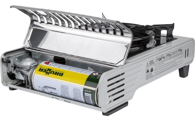 Réchaud Brunner COOKER DEVIL avec allumage piezo-éléctrique integré et bruleurs en aluminium. Flux du gaz réglable
