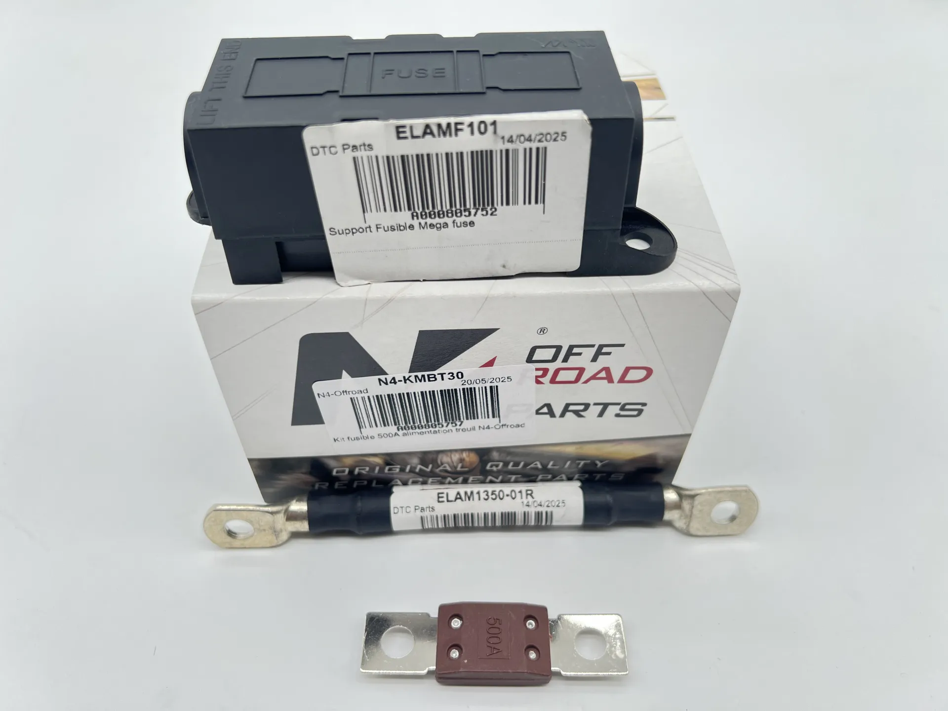 Kit pour installation d'un fusible de 500A sur les câbles d'alimentation d'un treuil électrique.