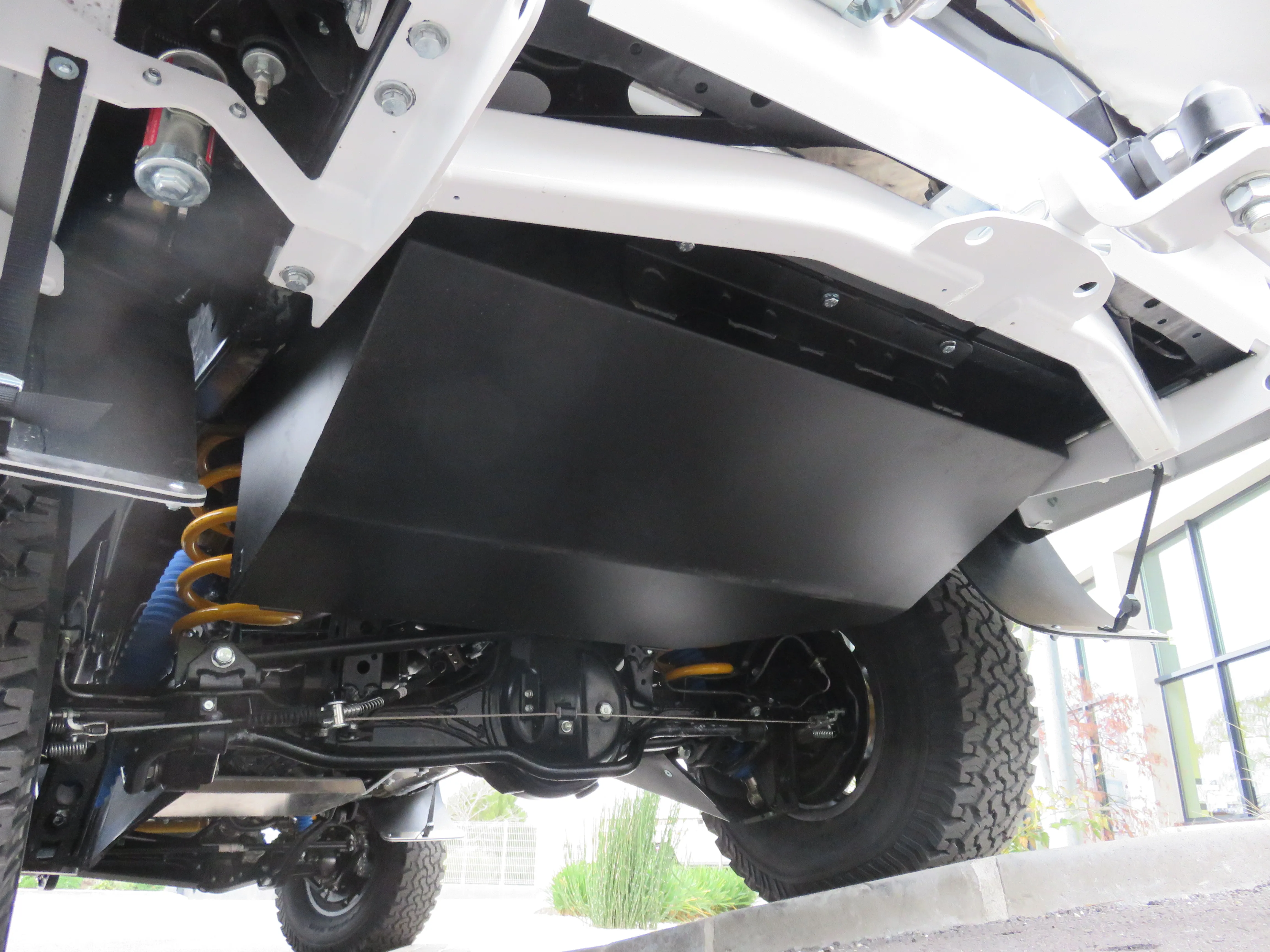 Réservoir supplémentaire de 180L pour Toyota HDJ HZJ 80 N4-Offroad Vient se positionner sous le plancher AR à la place de la roue de secours. Réservoir en acier avec cloisonnement et peinture époxy. Le remplissage se fait par l'orifice d'origine avec une goulotte 2 voies d'origine Toyota. Une tirette permet de choisir le réservoir à remplir. Une pompe gros débit assure le transfert de carburant du réservoir additionnel au réservoir d'origine. Montage sans modification de votre véhicule à l'exception de la goulotte du réservoir d'origine. Le kit complet comprend : Réservoir Goulotte Toyota 2 voies Pompe Facet gros débit Jauge tubulaire VDO Interrupteur Vumètre VDO Ø52 Colliers Durites Raccords Nécessaire de montage Notice Pour les baroudeurs extrêmes, un ski de protection aluminium BLRE27D est disponible en option pour protéger ce réservoir N4.