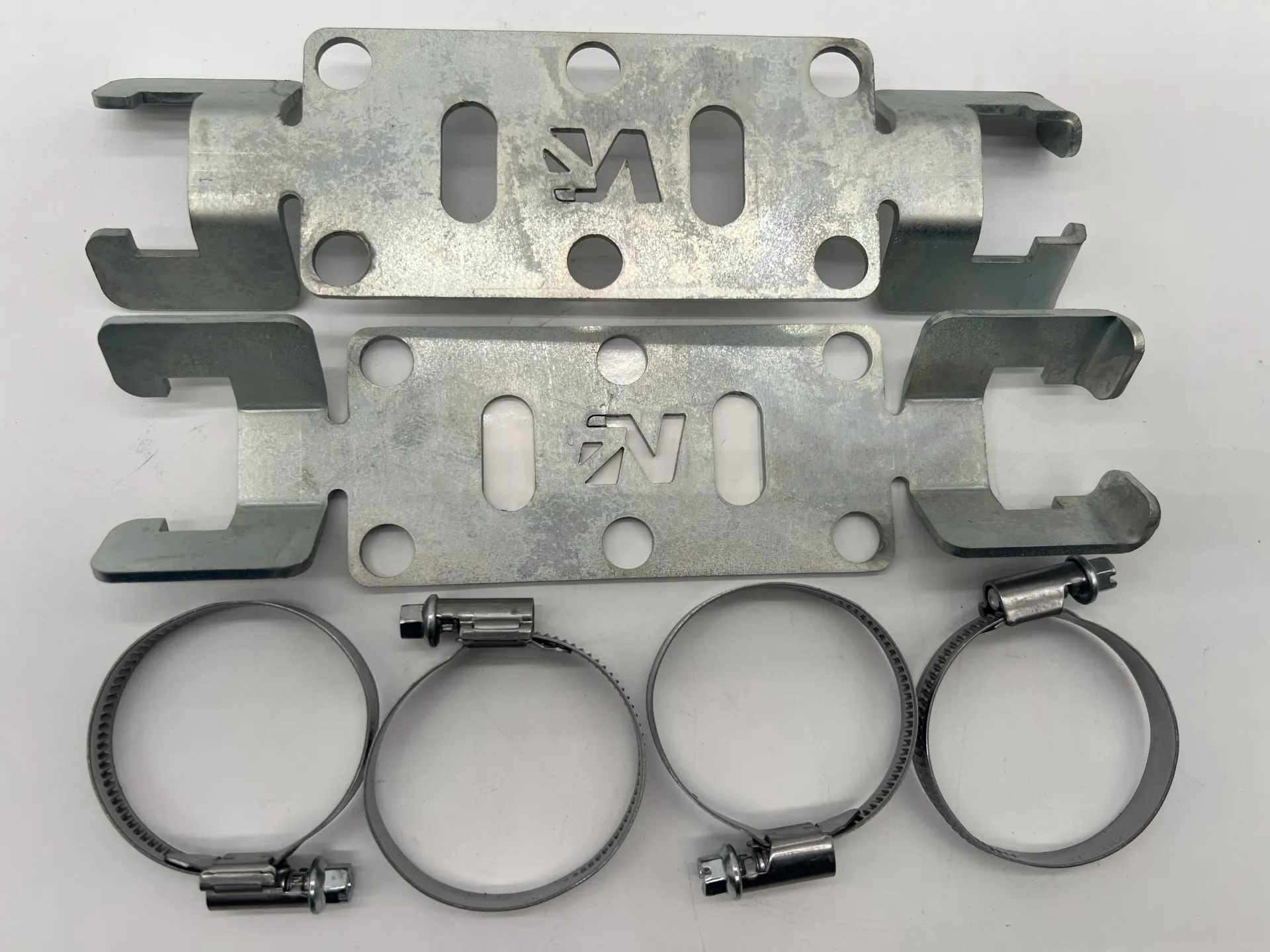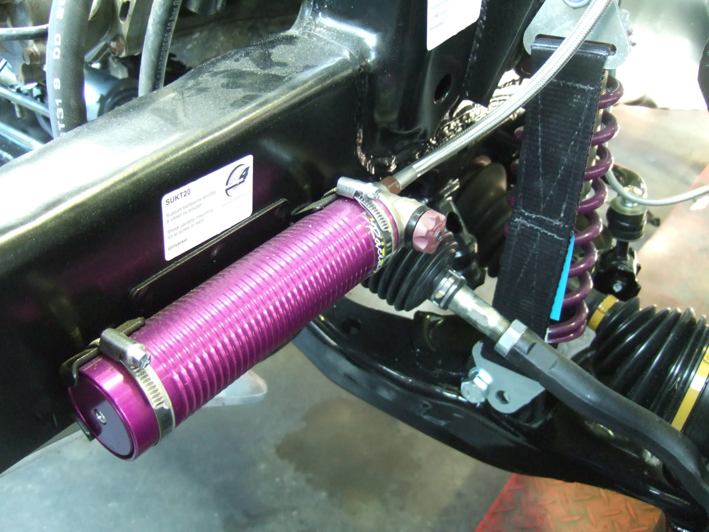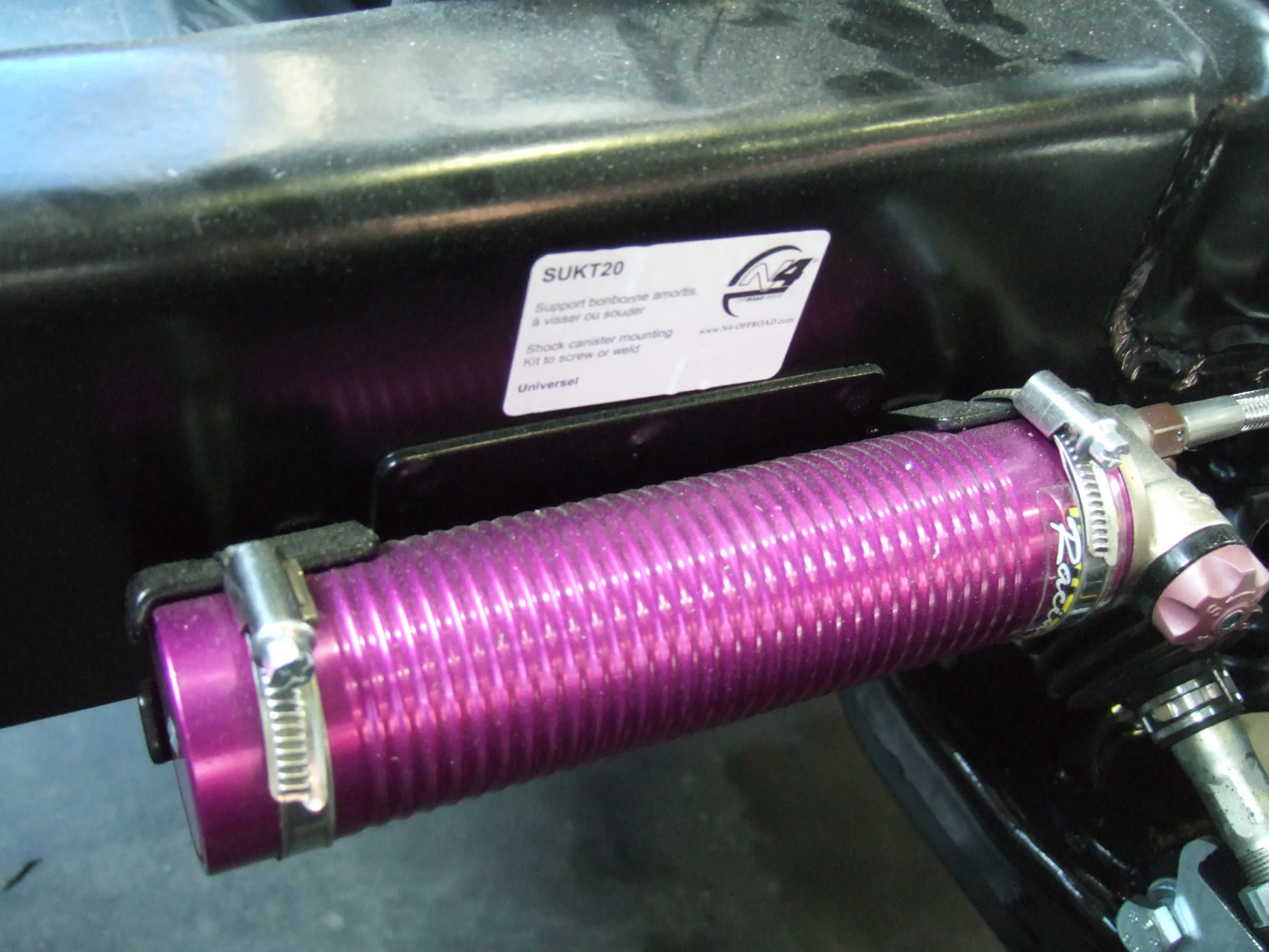 La paire Paire de supports universels pour installer les bonbonnes de refroidissement d'amortisseurs sur le châssis Support individuel à souder (recommandé) ou à visser au chassis. Livré avec les colliers de maintient des bonbonnes d'amortisseurs.
