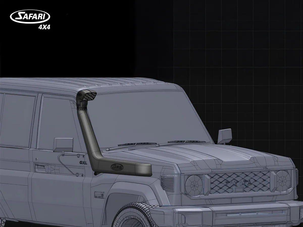 Montage remplacement snorkel origine - Ø4 Pouces - Non compatible tête cyclonique Le snorkel Safari est conçu pour offrir une protection optimale au moteur des véhicules tout-terrain dans des conditions extrêmes. En rehaussant l'admission d'air, il préserve le moteur des infiltrations d'eau et de poussière tout en garantissant un débit d'air parfaitement calibré pour une fiabilité maximale. Idéal pour les amateurs d'offroad, ce snorkel assure une alimentation en air propre et sèche, quelles que soient les conditions météorologiques ou la nature du terrain.L'entrée d'air traditionnelle « Air Ram » optimise le flux d'air grâce à une grille à faible restriction, tout en jouant un rôle essentiel de séparateur d'eau et de poussière. Développé en fonction des motorisations il est conçu pour répondre aux exigences des admissions d'air d'origine. Conçu et développé en Australie avec le bush comme cahier des charges.Caractéristiques :- Livré avec gabarit de découpe & notice de montage- Matériau snorkel : Polyéthylène basse densité linéaire (LLDPE) ultra-résistant- Matériaux annexes : Visserie en acier inoxydable, raccord en caoutchouc EPDM moulé- Coloris : noir- Protection anti-UV- Température maximale : +100°CSAF-SS62HFS5