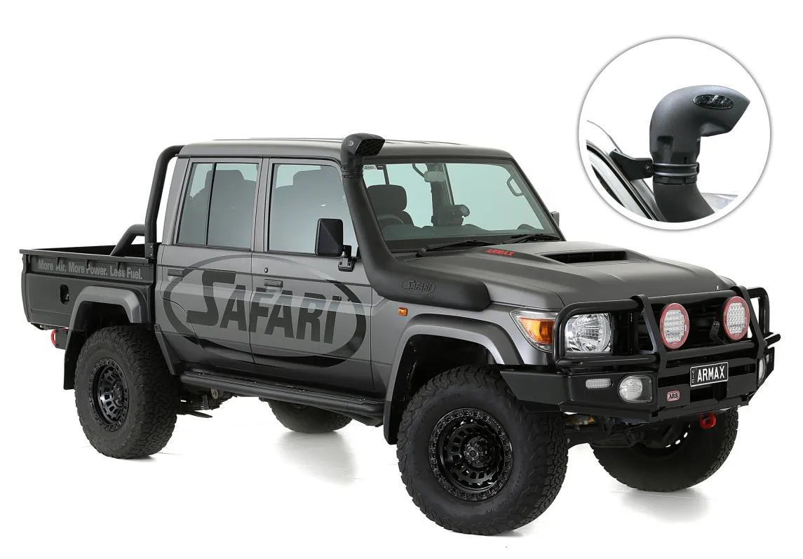 Montage remplacement snorkel origine - Diamètre entrée : 4 Pouces Snorkel gros volume 4 pouces optimisant l'entrée d'air dans le moteur.Pour certains véhicules, la modification de l'admission va jusqu'à la découpe de la boite à air pour augmenter le flux entrant d'air dans le moteur. Développé sur banc pour les véhicules optimisés et reprogrammés, ce snorkel est un complément à votre préparation offrant un gain en entrée d'air plus important. Diamètre constant d'admission d'air de 4 pouces / 102mm.Le snorkel Safari Armax est conçu pour les 4x4 les plus exigeants, qu'ils soient d'origine ou modifiés pour des performances améliorées. Bien plus qu'un simple système de prise d'air surélevée, avec son diamètre élargi, il offre un débit d'air supérieur de 50 % par rapport à l'admission standard, optimisant ainsi la puissance du moteur, la consommation de carburant et les performances globales en conditions extrêmes.L'Air Ram de 4 pouces, situé dans la partie supérieure du snorkel, est spécialement conçue pour optimiser le flux d'air tout en minimisant la résistance à l'aspiration. Grâce à sa grille à faible restriction, il améliore l'efficacité de l'admission et la réactivité du moteur, tout en jouant un rôle essentiel de séparateur d'eau et de poussière. Ce système empêche efficacement l'humidité et les impuretés d'atteindre le moteur, garantissant ainsi une protection optimale sur terrains humides et poussiéreux. Conçu et développé en Australie avec le bush comme cahier des charges.Caractéristiques :- Diamètre constant d'admission d'air de 4 pouces / 102mm- Livré avec gabarit de découpe & notice de montage- Matériau snorkel : Polyéthylène basse densité linéaire (LLDPE) ultra-résistant- Matériaux annexes : Visserie en acier inoxydable, raccord en caoutchouc EPDM moulé- Coloris : noir- Protection anti-UV- Température maximale : +100°C