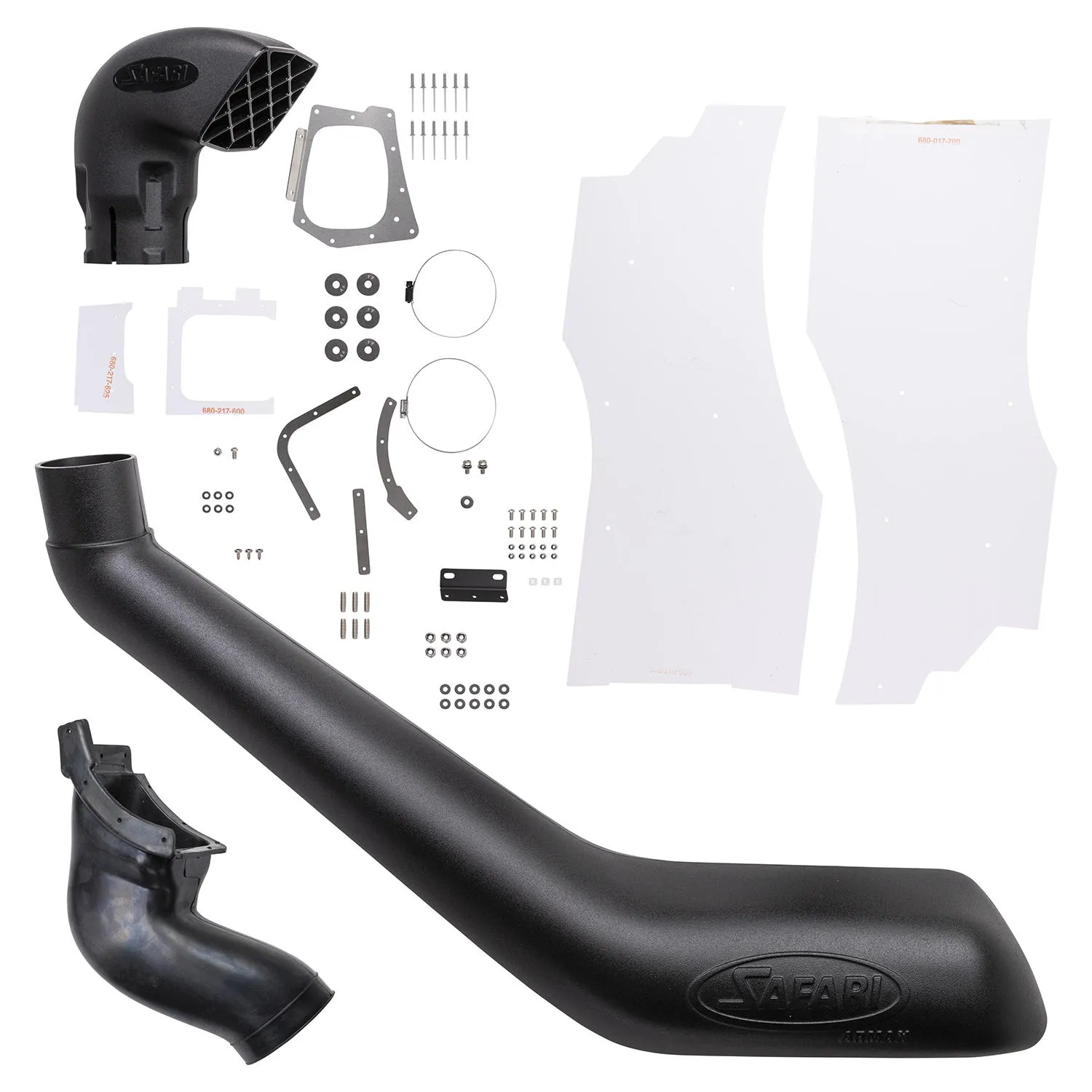 Diamètre entrée : 4 Pouces Snorkel gros volume 4 pouces optimisant l'entrée d'air dans le moteur.Pour certains véhicules, la modification de l'admission va jusqu'à la découpe de la boite à air pour augmenter le flux entrant d'air dans le moteur. Développé sur banc pour les véhicules optimisés et reprogrammés, ce snorkel est un complément à votre préparation offrant un gain en entrée d'air plus important. Diamètre constant d'admission d'air de 4 pouces / 102mm.Le snorkel Safari Armax est conçu pour les 4x4 les plus exigeants, qu'ils soient d'origine ou modifiés pour des performances améliorées. Bien plus qu'un simple système de prise d'air surélevée, avec son diamètre élargi, il offre un débit d'air supérieur de 50 % par rapport à l'admission standard, optimisant ainsi la puissance du moteur, la consommation de carburant et les performances globales en conditions extrêmes.L'Air Ram de 4 pouces, situé dans la partie supérieure du snorkel, est spécialement conçue pour optimiser le flux d'air tout en minimisant la résistance à l'aspiration. Grâce à sa grille à faible restriction, il améliore l'efficacité de l'admission et la réactivité du moteur, tout en jouant un rôle essentiel de séparateur d'eau et de poussière. Ce système empêche efficacement l'humidité et les impuretés d'atteindre le moteur, garantissant ainsi une protection optimale sur terrains humides et poussiéreux. Conçu et développé en Australie avec le bush comme cahier des charges.Caractéristiques :- Diamètre constant d'admission d'air de 4 pouces / 102mm- Livré avec gabarit de découpe & notice de montage- Matériau snorkel : Polyéthylène basse densité linéaire (LLDPE) ultra-résistant- Matériaux annexes : Visserie en acier inoxydable, raccord en caoutchouc EPDM moulé- Coloris : noir- Protection anti-UV- Température maximale : +100°C