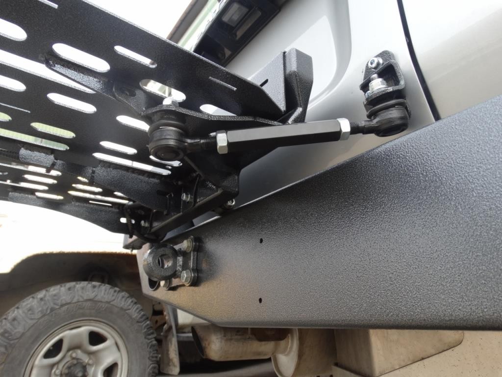 Le bras support du jerricane est assisté par un vérin à gaz, ce qui facilite sa fermeture et son ouverture sur tout type de terrain.