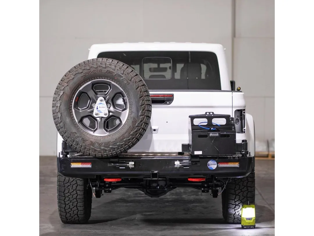 Le porte roue gauche Kaymar pour Jeep Gladiator est conçu pour supporter votre roue en aluminium d'origine (jusqu'à 35"). Il comprend notre mécanisme unique de verrouillage central qui continue de fonctionner dans les pires conditions tel que le sable et la boue. Le support de roue utilise nos vérins à gaz de haute qualité et éprouvés. La poignées est recouvertes de caoutchouc Ce modèle est conçu pour les jantes en aluminium Caractéristiques : Pour jante en aluminium et pneu jusqu'à 35" soit l'équivalent d'un 315/70X17. Installé sur le pivot extérieur grâce à deux roulements coniques sur le pare choc arrière Kaymar