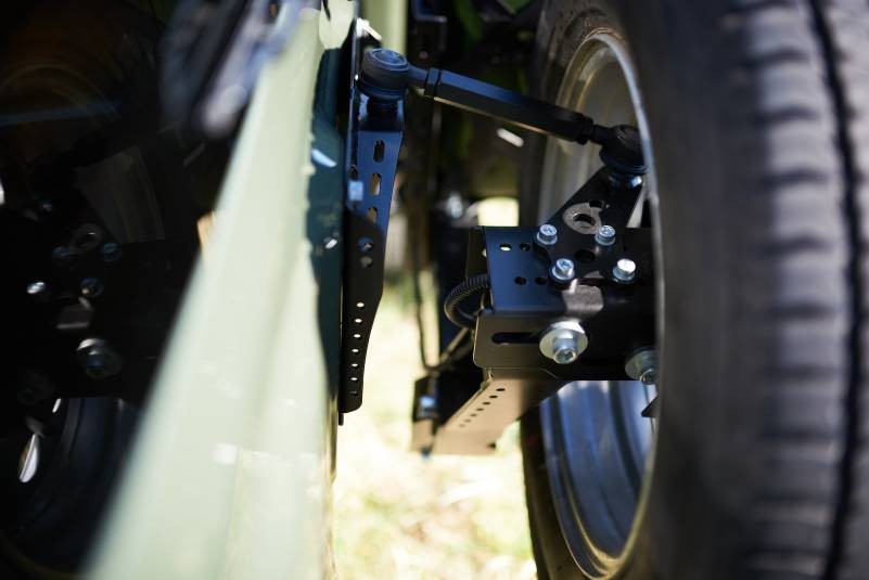 Ce support de roue de secours est assisté par un amortisseur à gaz, ce qui facilite sa fermeture et son ouverture sur tout type de terrain.