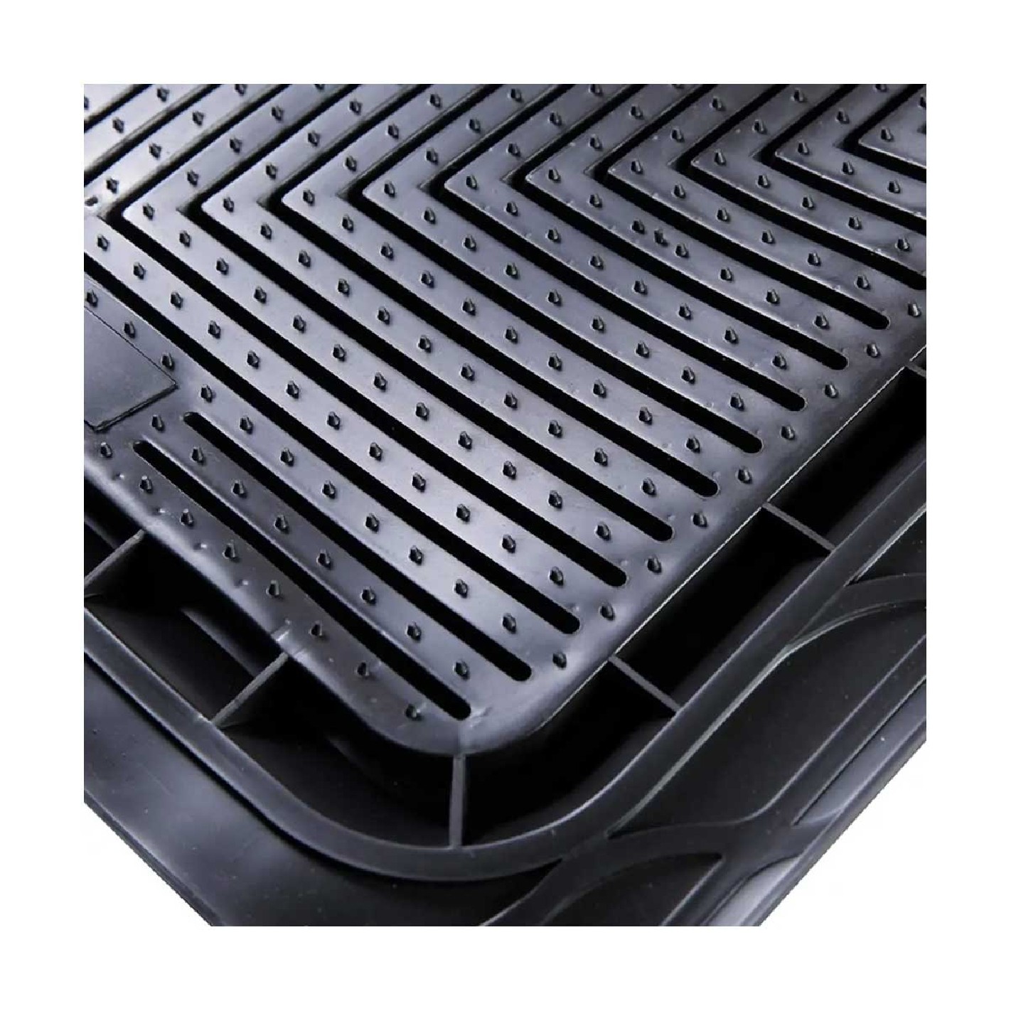 Fabriqué en caoutchouc solide, ce qui aide à maintenir l'intégrité et la forme. Très facile à nettoyer avec de l'eau sous pression. Le contour du tapis est formé par une arête chargée de maintenir à l'intérieur les restes de chaussures détachés. Le bas du tapis a de petites pointes pour empêcher le tapis de glisser. De taille généreuse, ils peuvent également être coupés pour un ajustement personnalisé.